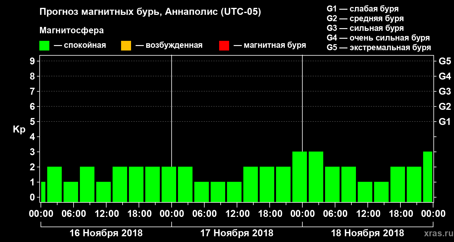 Прогноз магнитных бурь в Аннаполисе — 16 ноября 2018 года