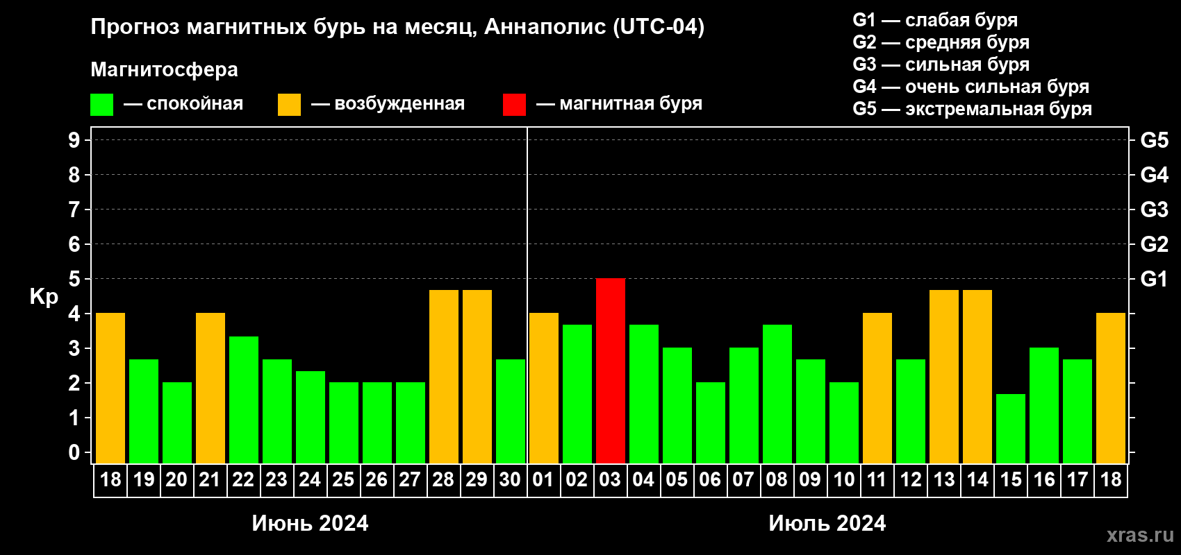 Прогноз магнитных бурь в Аннаполисе — 18 июня 2024 года