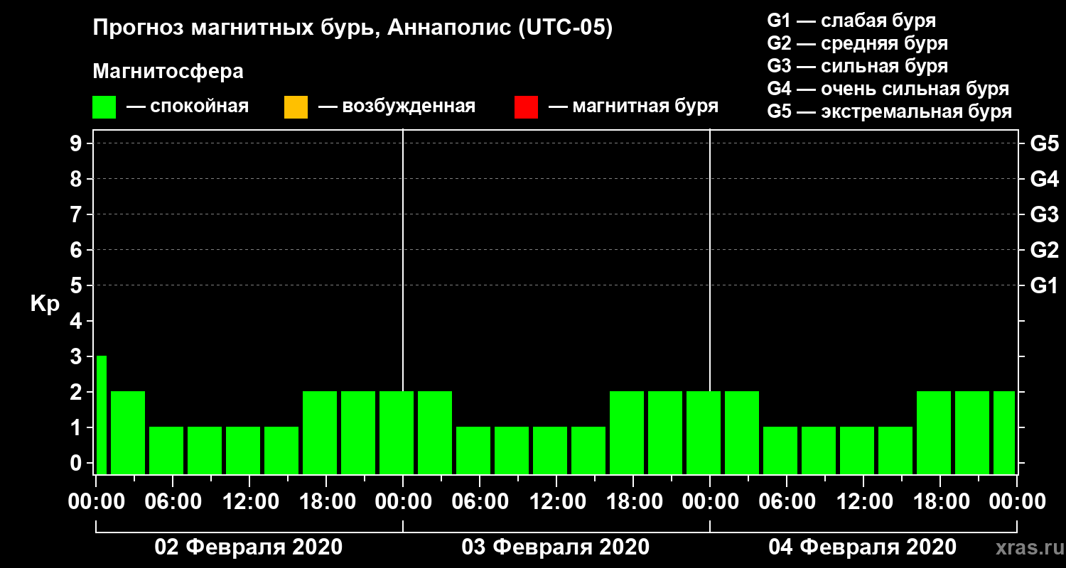 Прогноз магнитных бурь в Аннаполисе — 2 февраля 2020 года