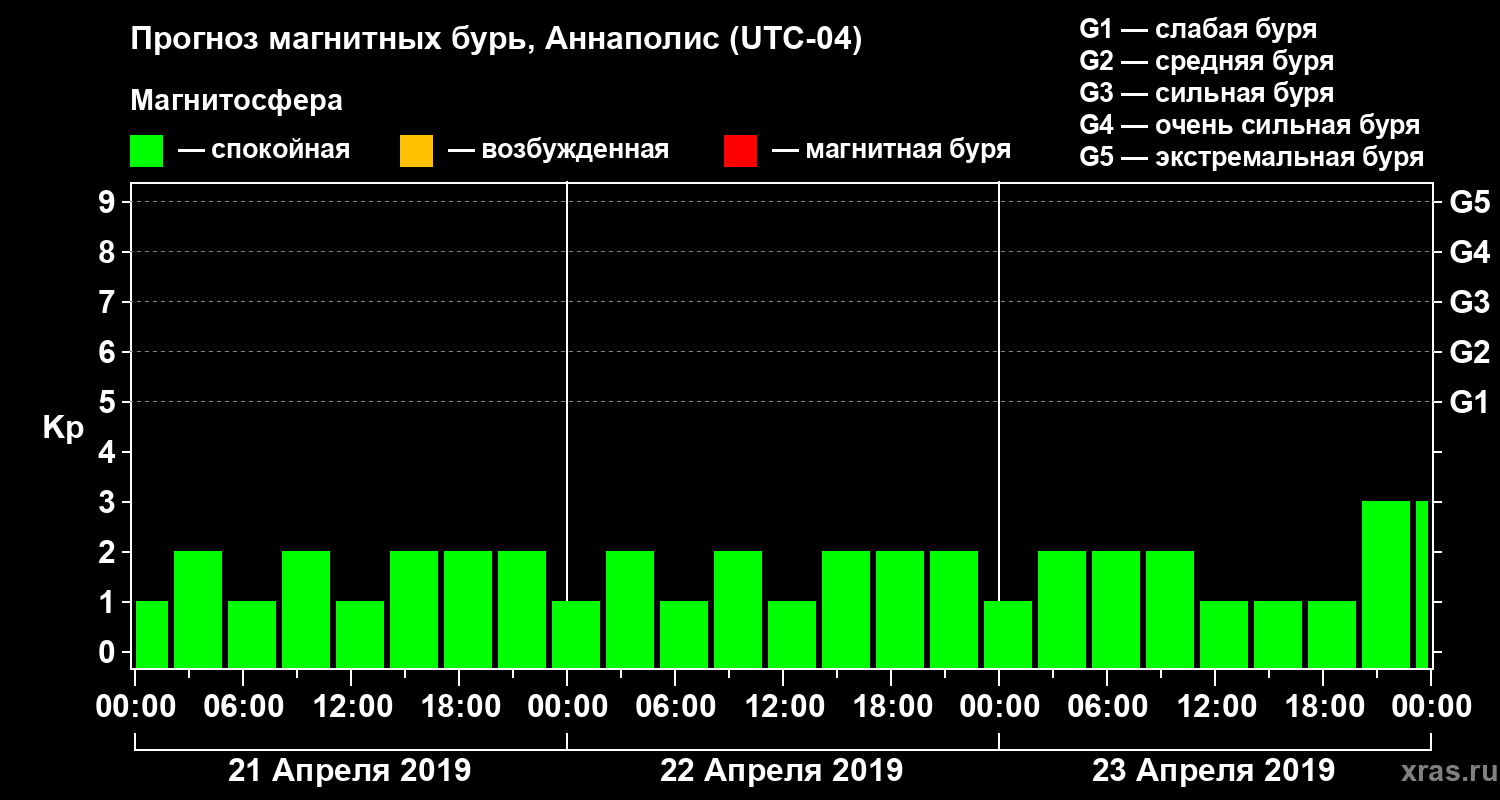 Прогноз магнитных бурь в Аннаполисе — 21 апреля 2019 года
