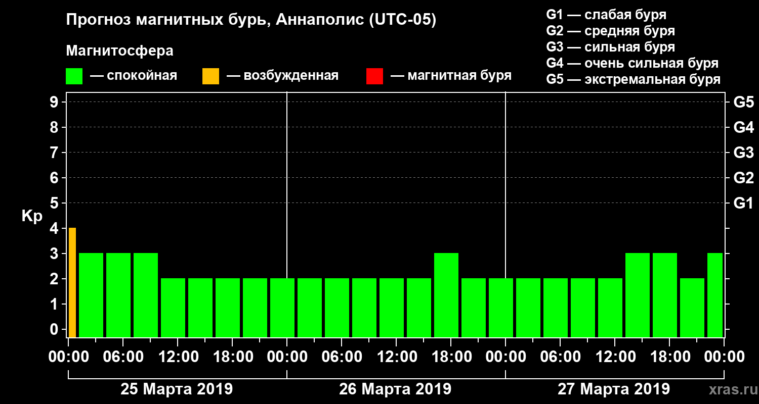 Прогноз магнитных бурь в Аннаполисе — 25 марта 2019 года