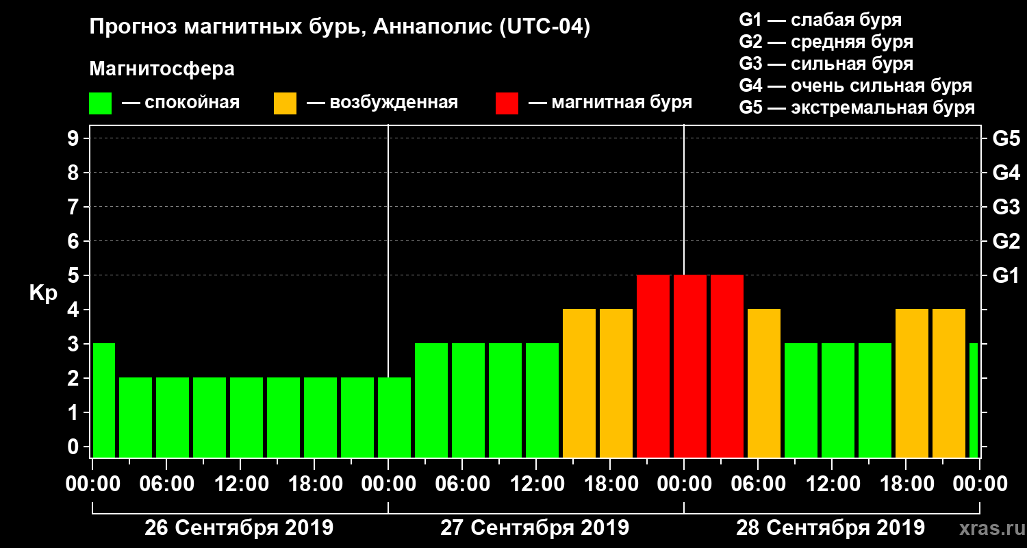 Прогноз магнитных бурь в Аннаполисе — 26 сентября 2019 года