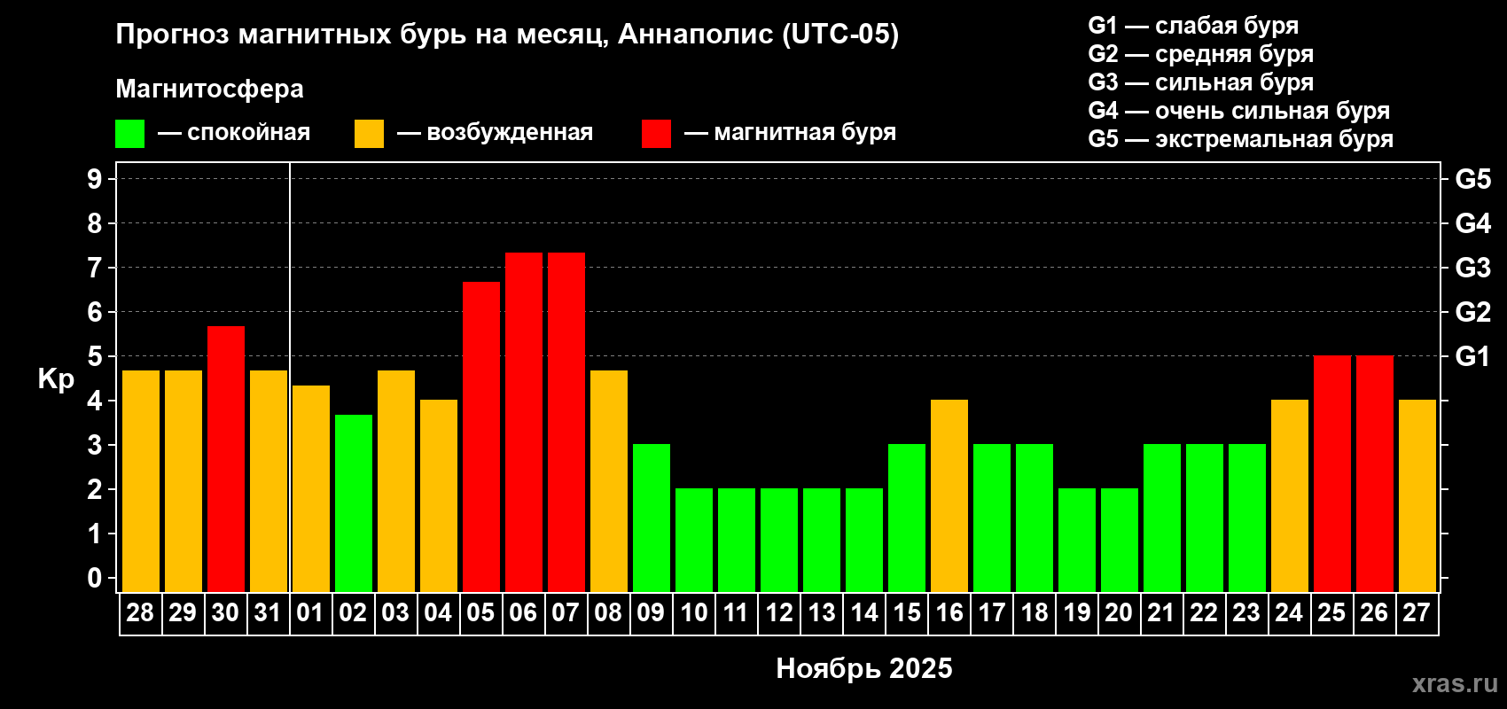 Прогноз магнитных бурь в Аннаполисе — 28 октября 2025 года