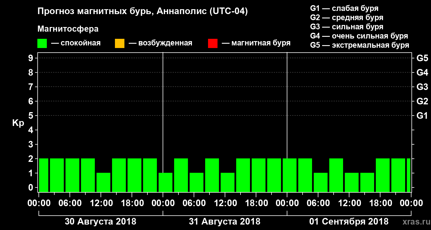 Прогноз магнитных бурь в Аннаполисе на 30 августа 2018 года