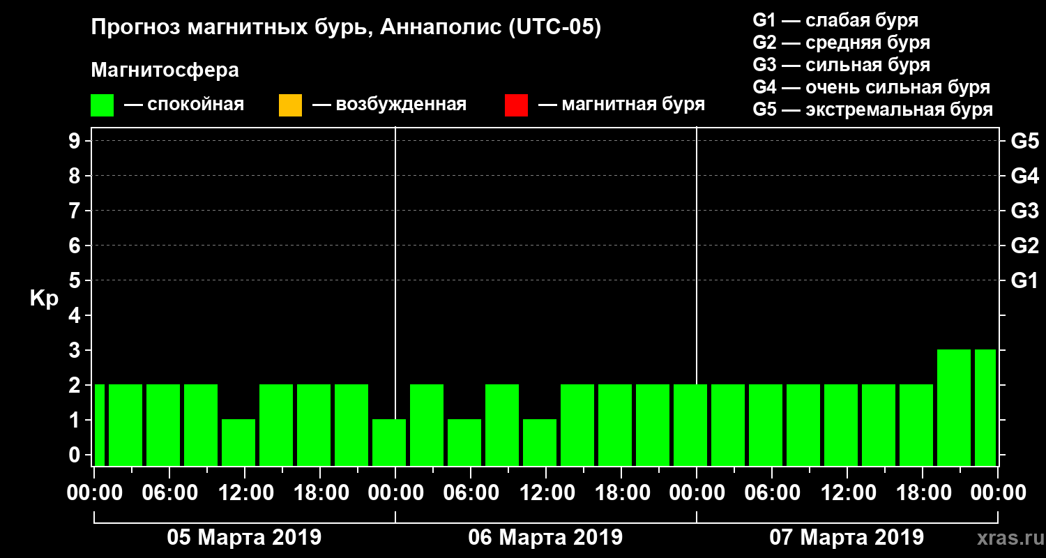 Прогноз магнитных бурь в Аннаполисе — 5 марта 2019 года