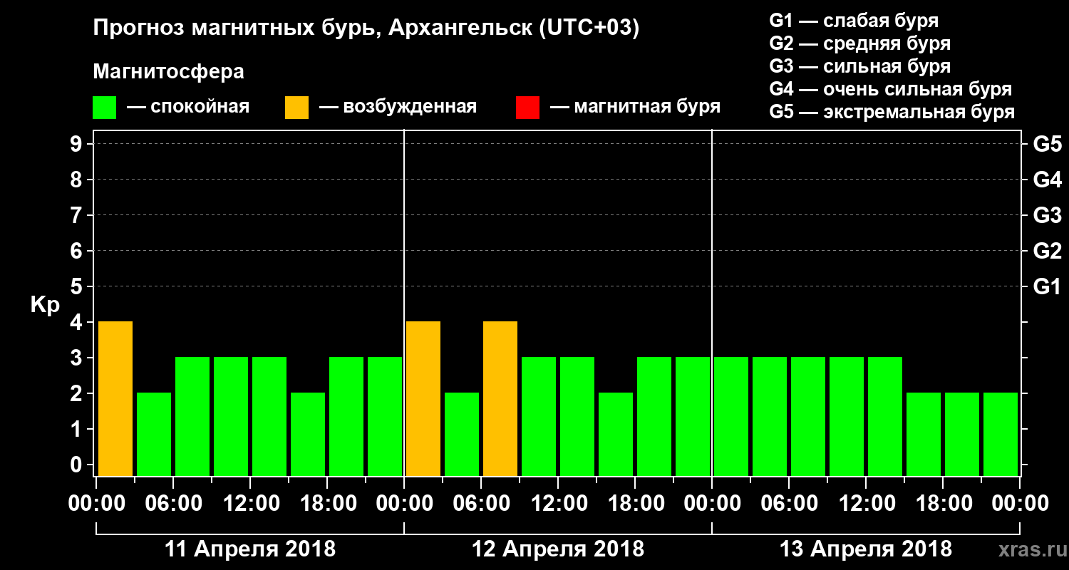 Прогноз магнитных бурь в Архангельске — 11 апреля 2018 года