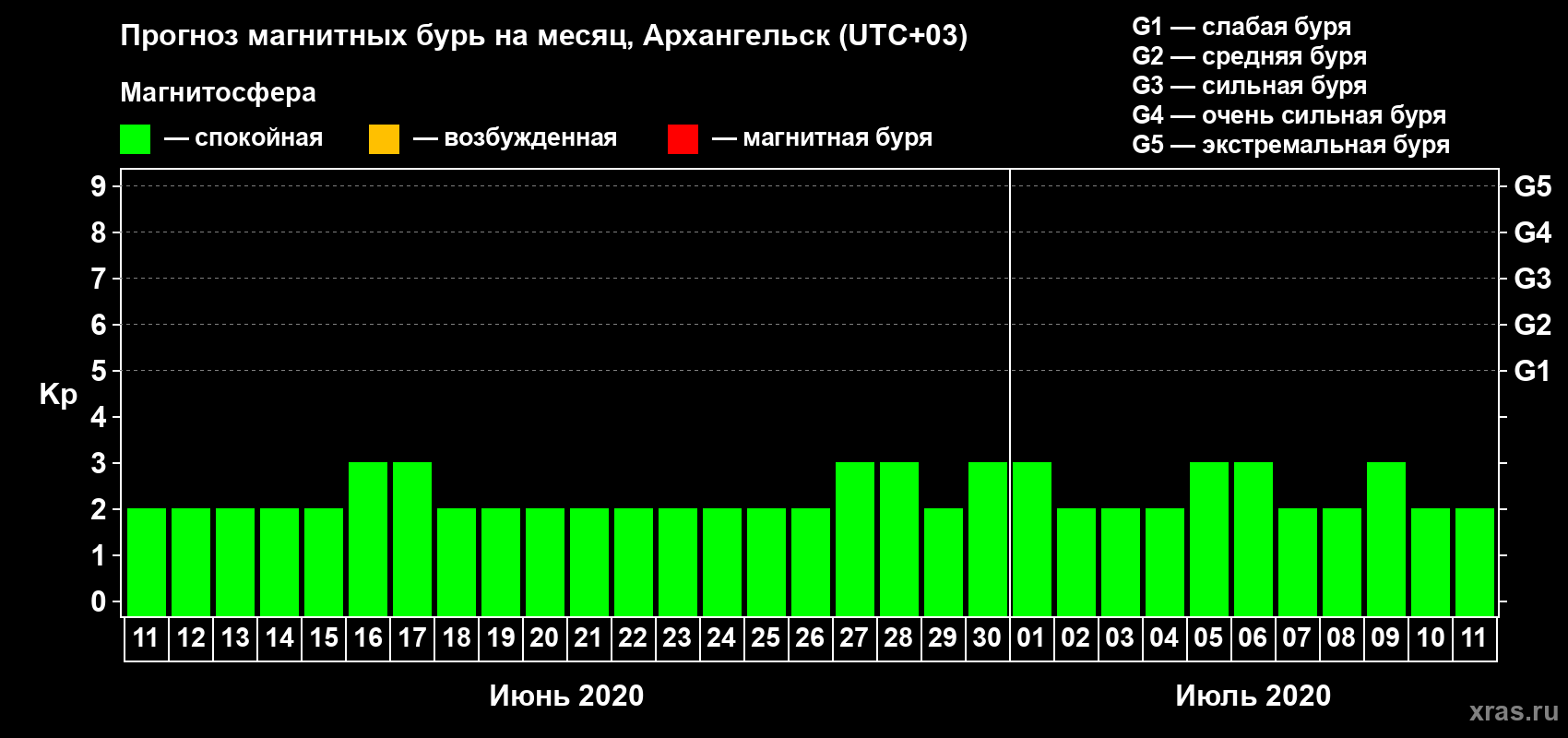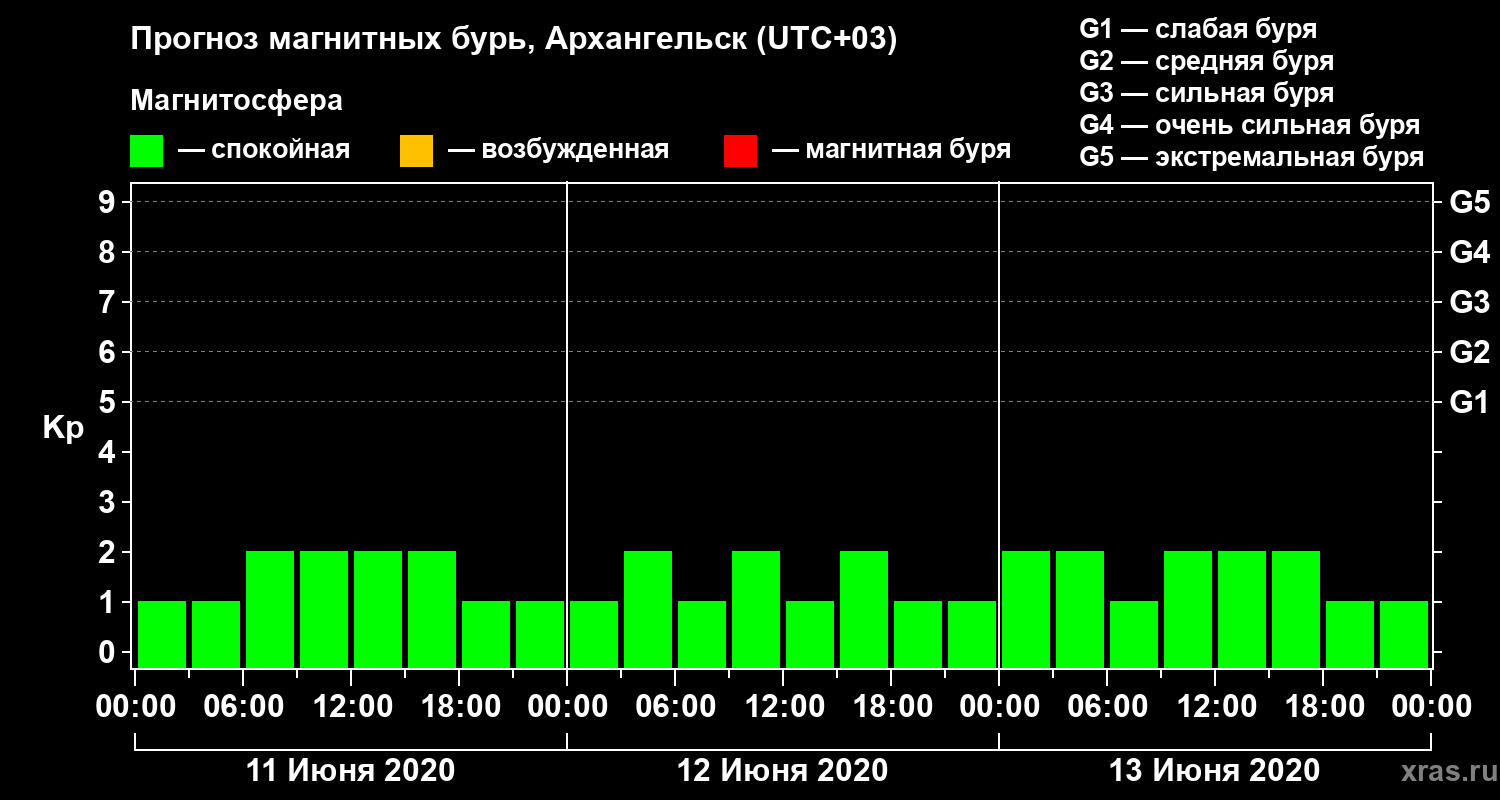 Прогноз магнитных бурь в Архангельске — 11 июня 2020 года
