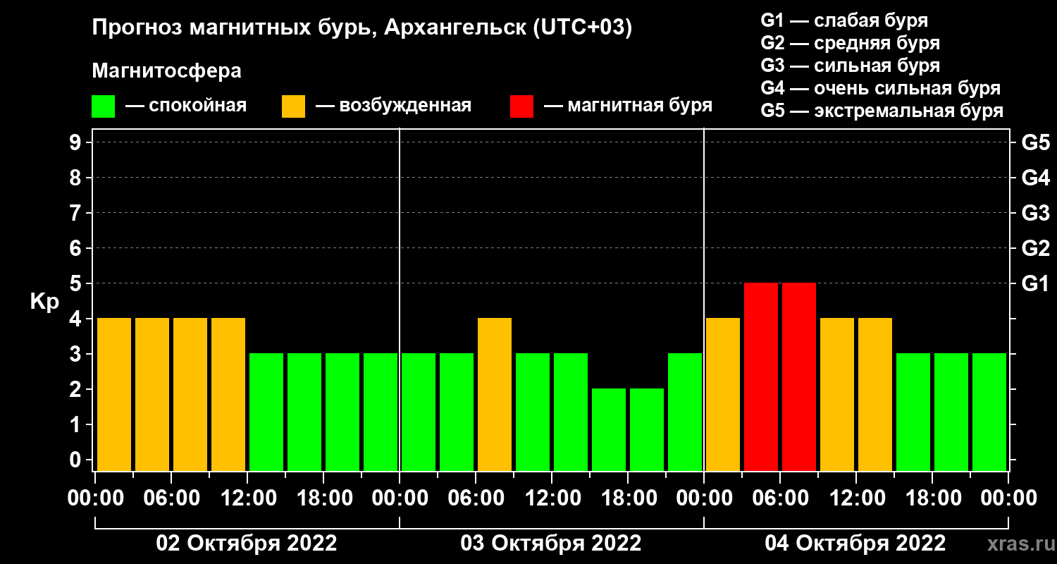 Прогноз магнитных бурь в Архангельске — 2 октября 2022 года