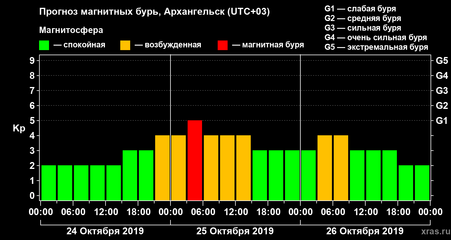 Прогноз магнитных бурь в Архангельске — 24 октября 2019 года