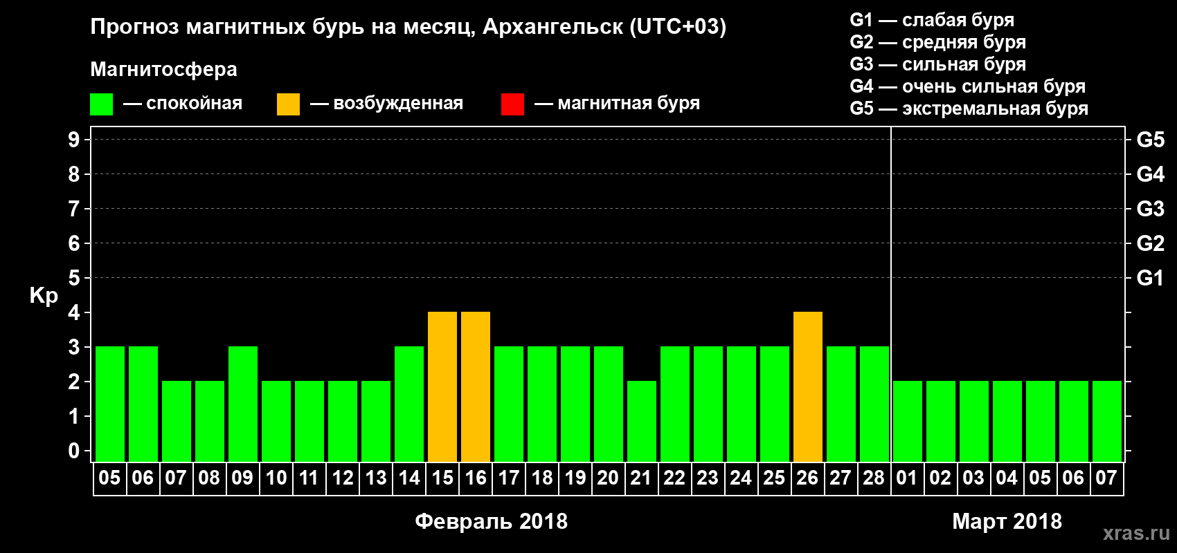 Прогноз магнитных бурь в Архангельске — 5 февраля 2018 года