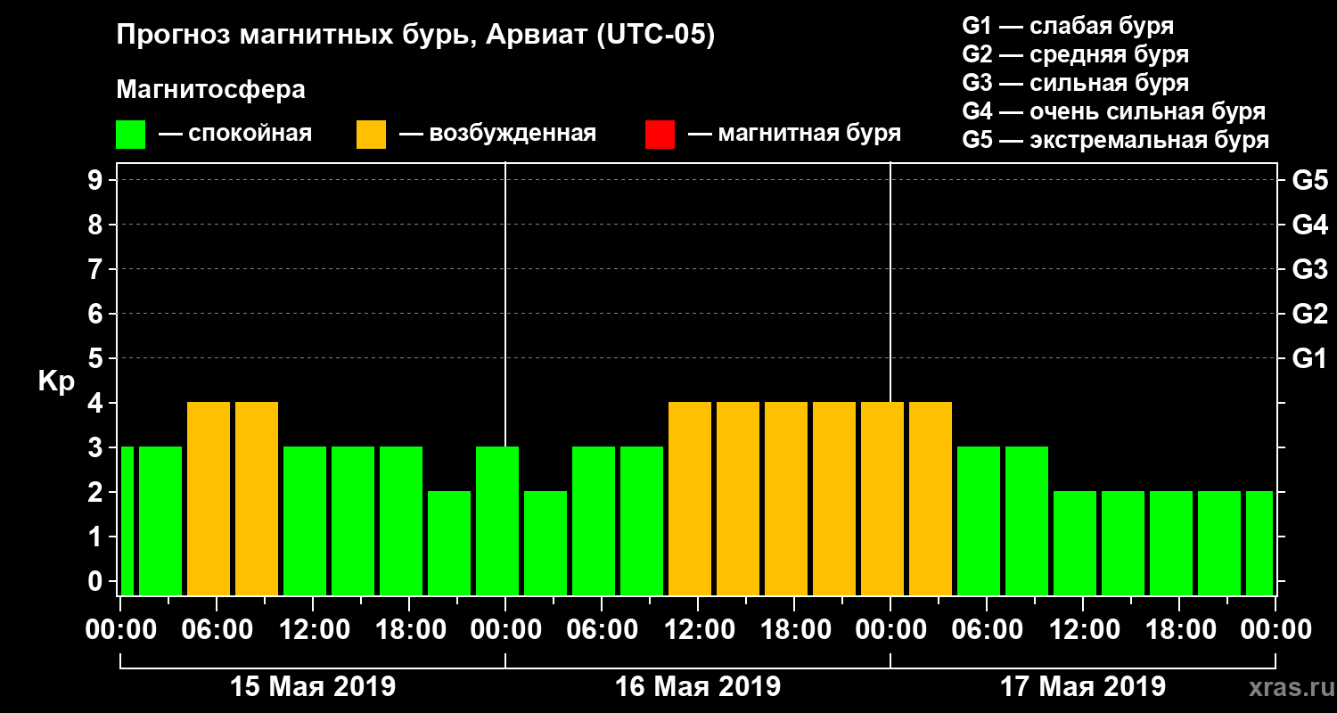 Прогноз магнитных бурь в Арвиате — 15 мая 2019 года