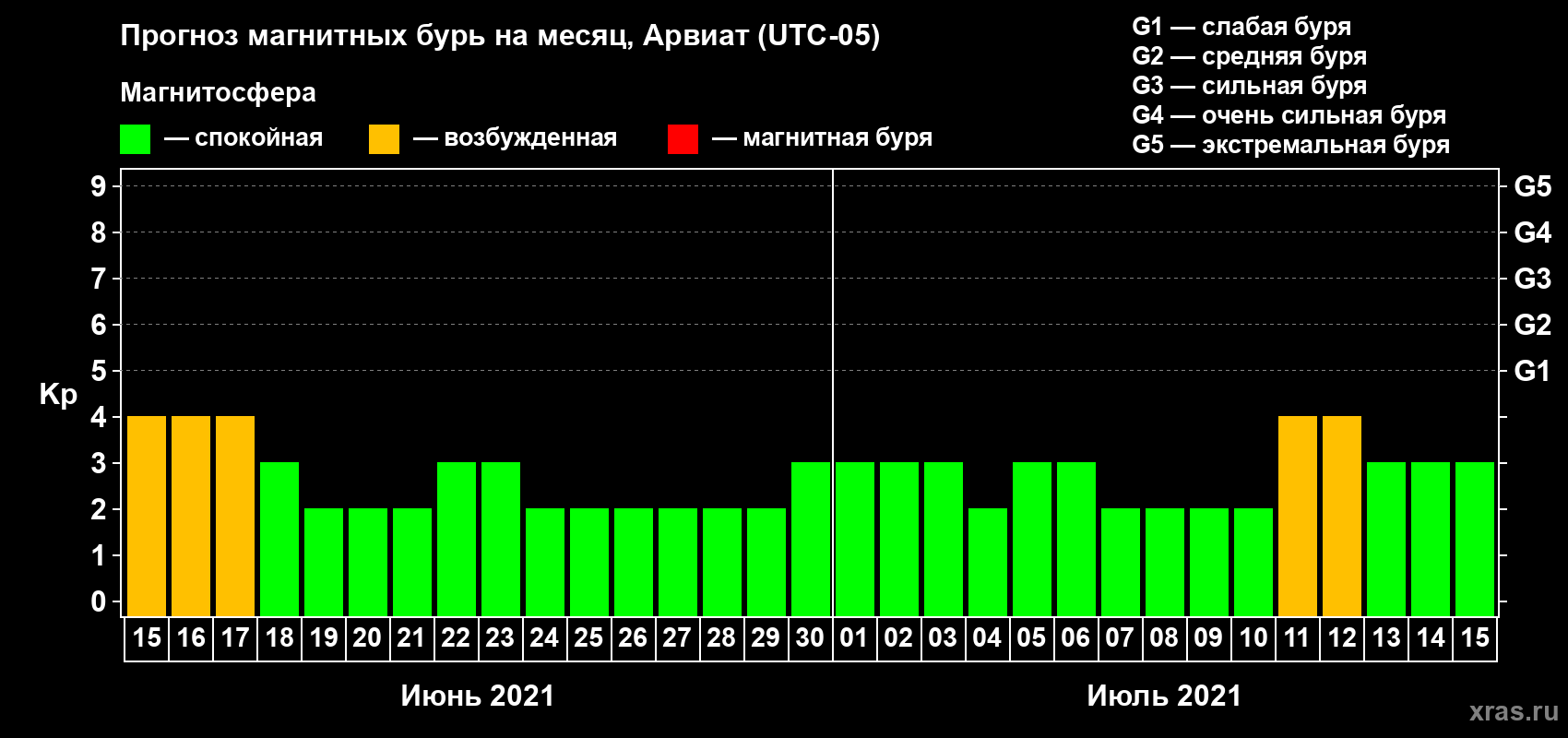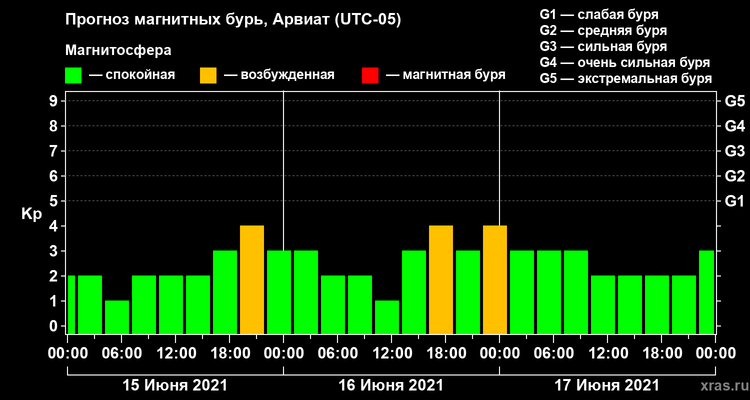 Прогноз магнитных бурь в Арвиате — 15 июня 2021 года