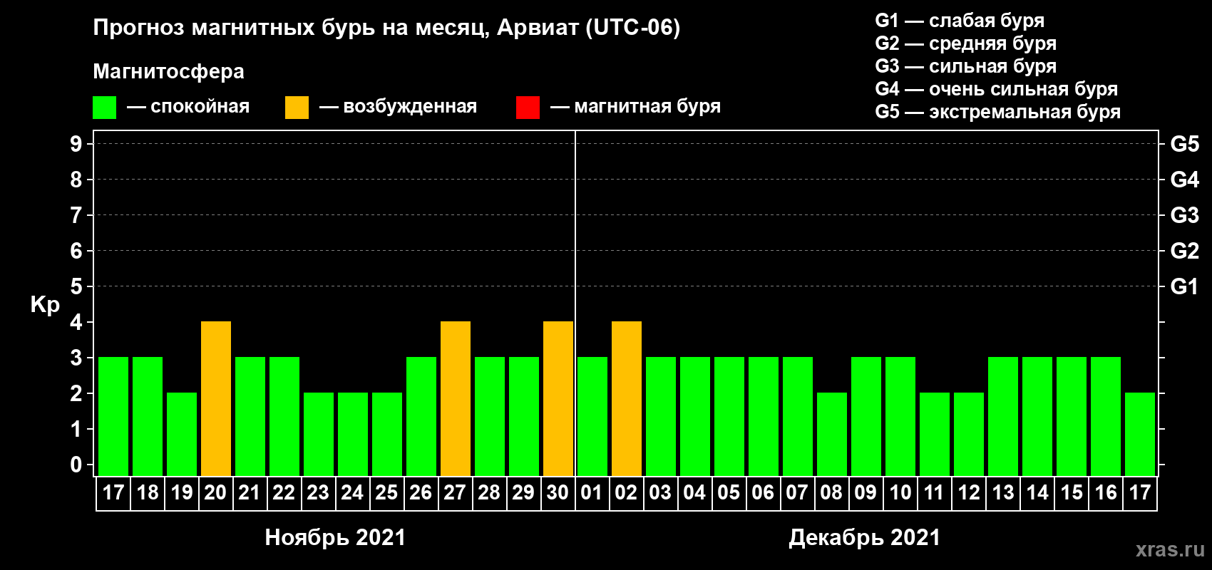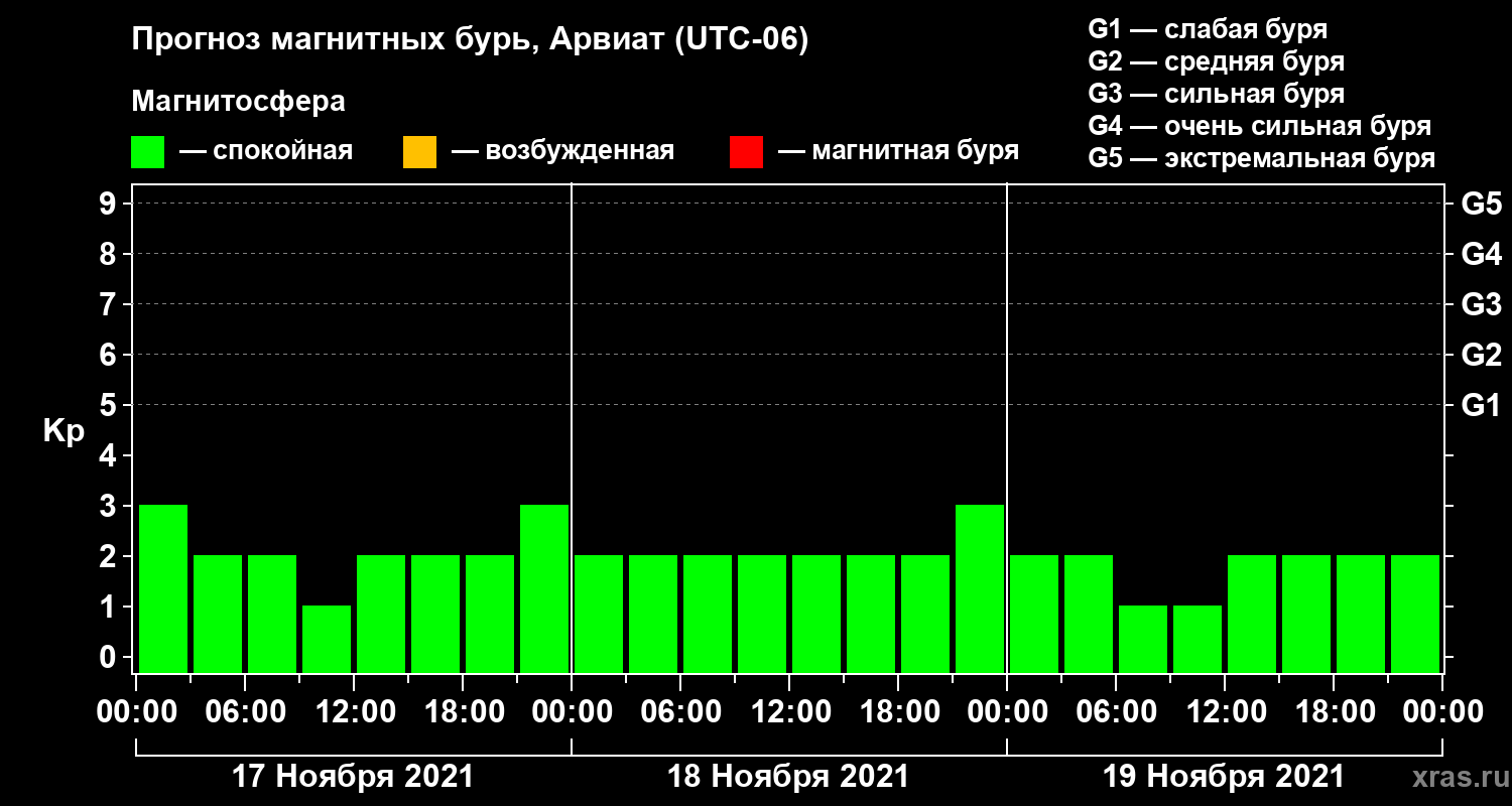 Прогноз магнитных бурь в Арвиате — 17 ноября 2021 года