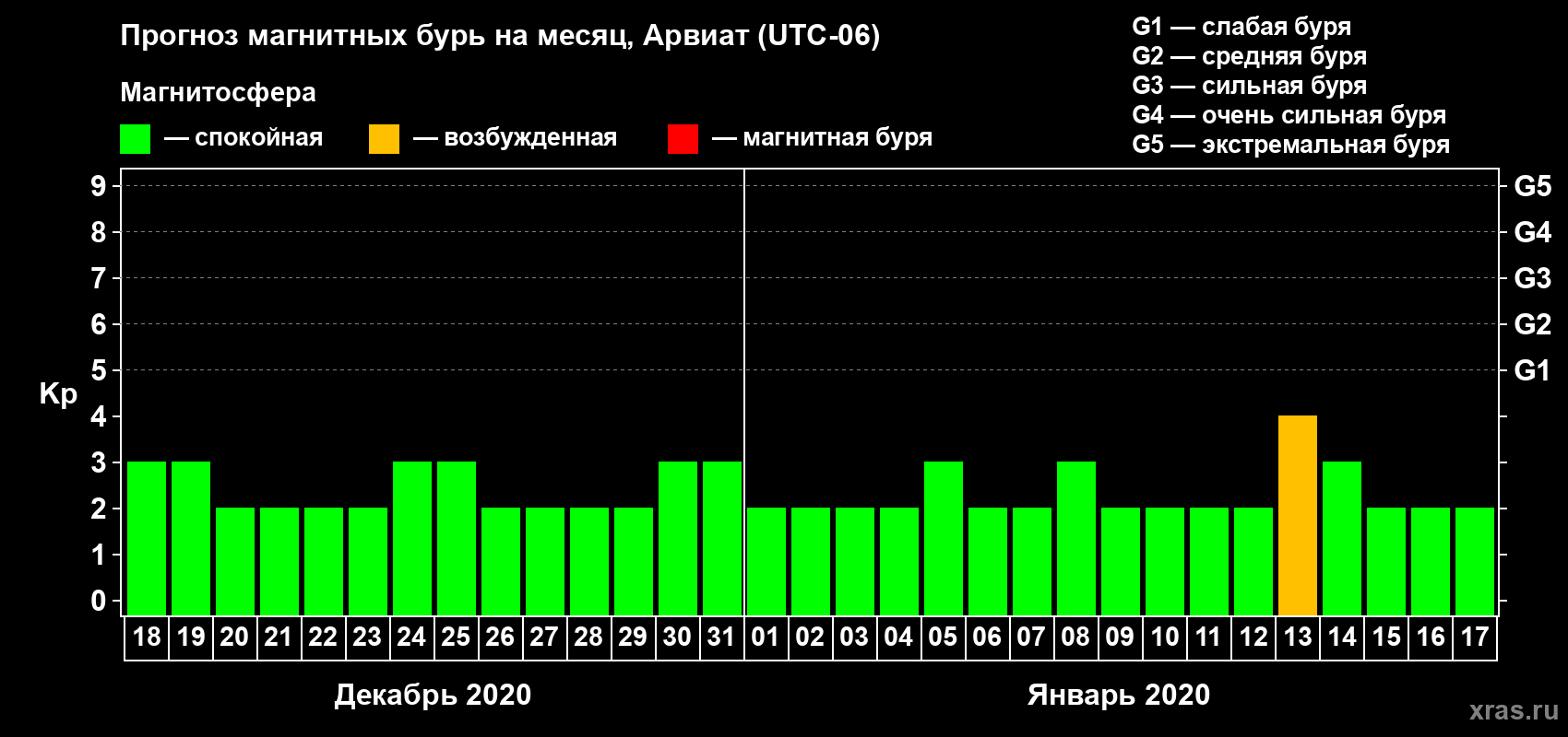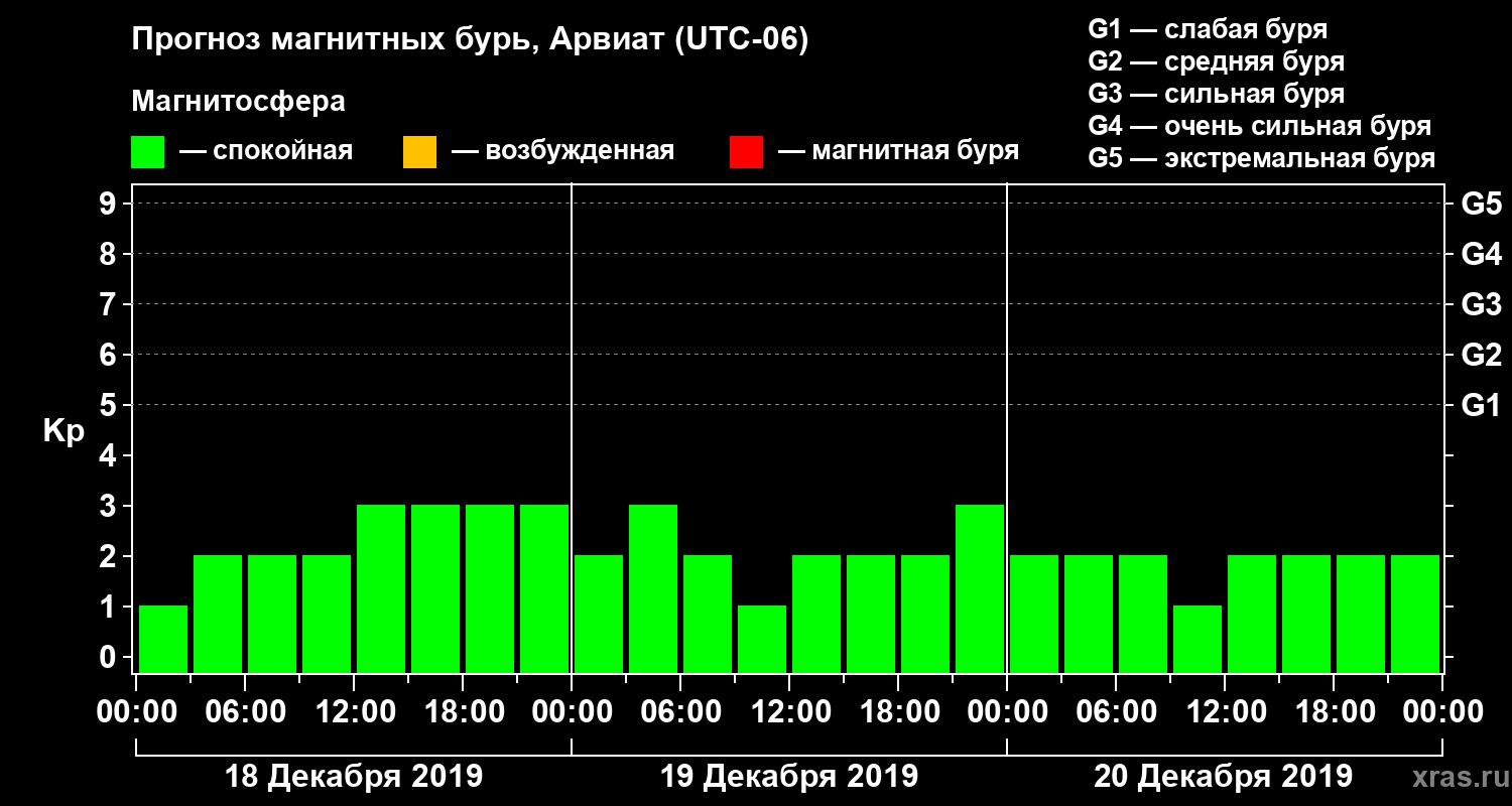 Прогноз магнитных бурь в Арвиате — 18 декабря 2019 года