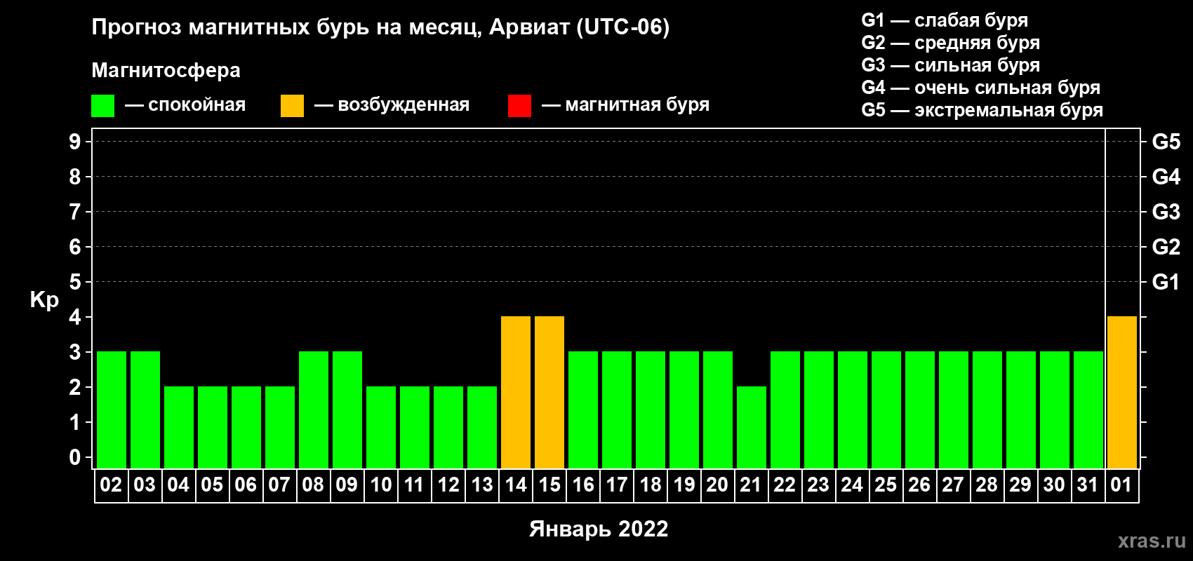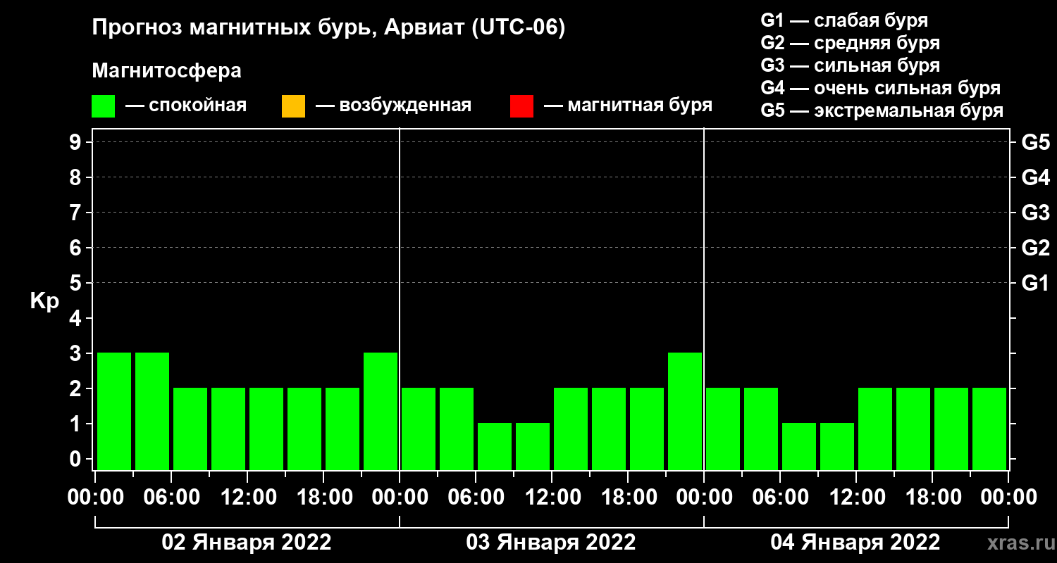 Прогноз магнитных бурь в Арвиате — 2 января 2022 года