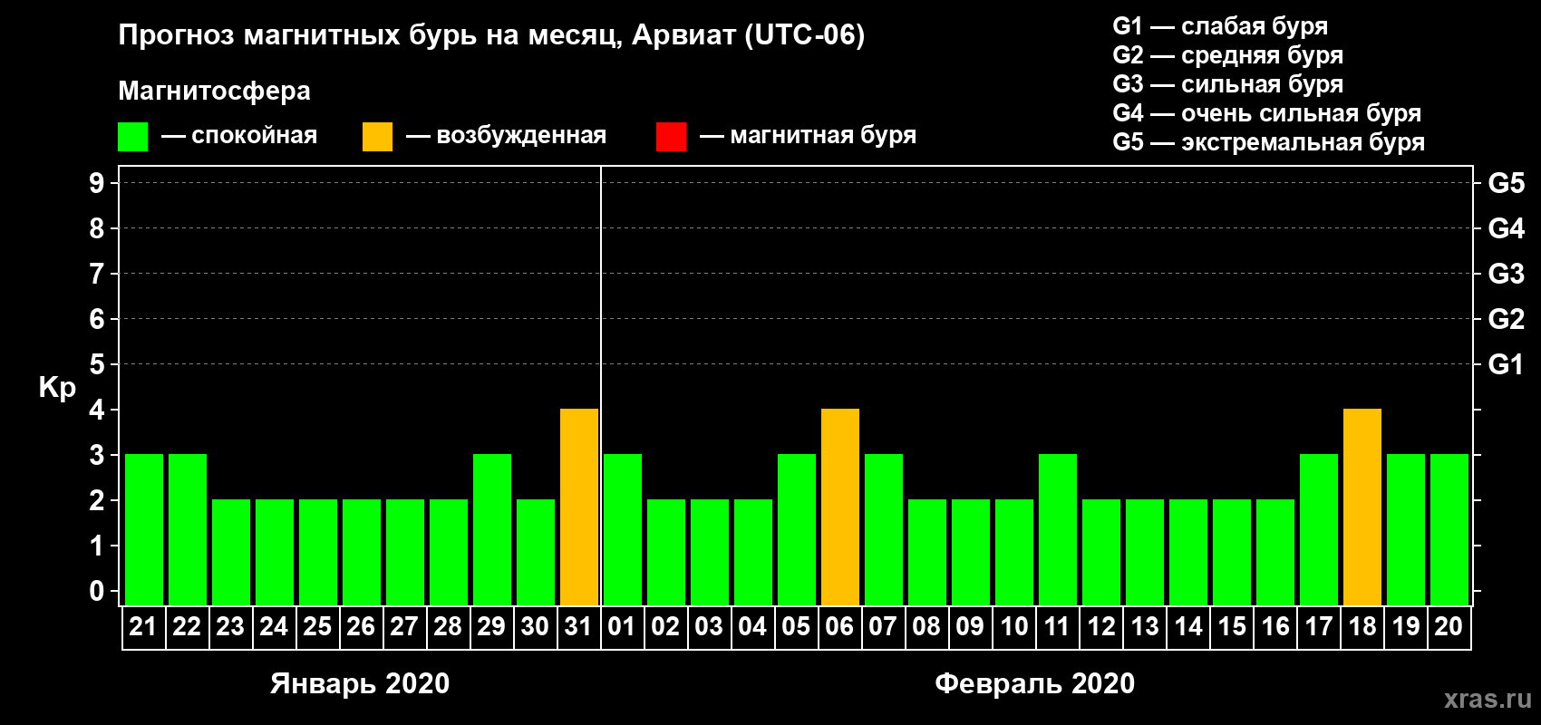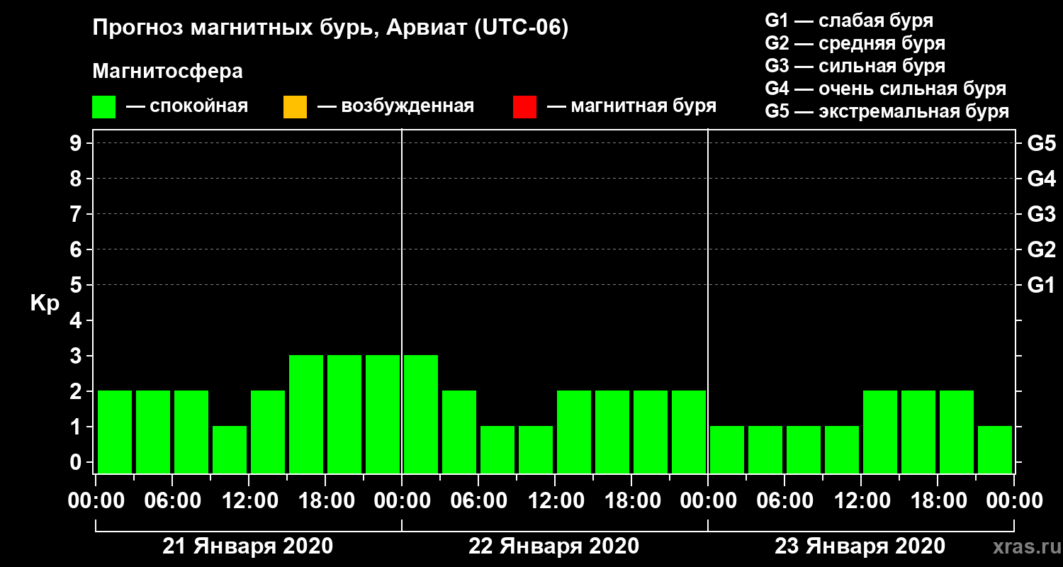 Прогноз магнитных бурь в Арвиате — 21 января 2020 года