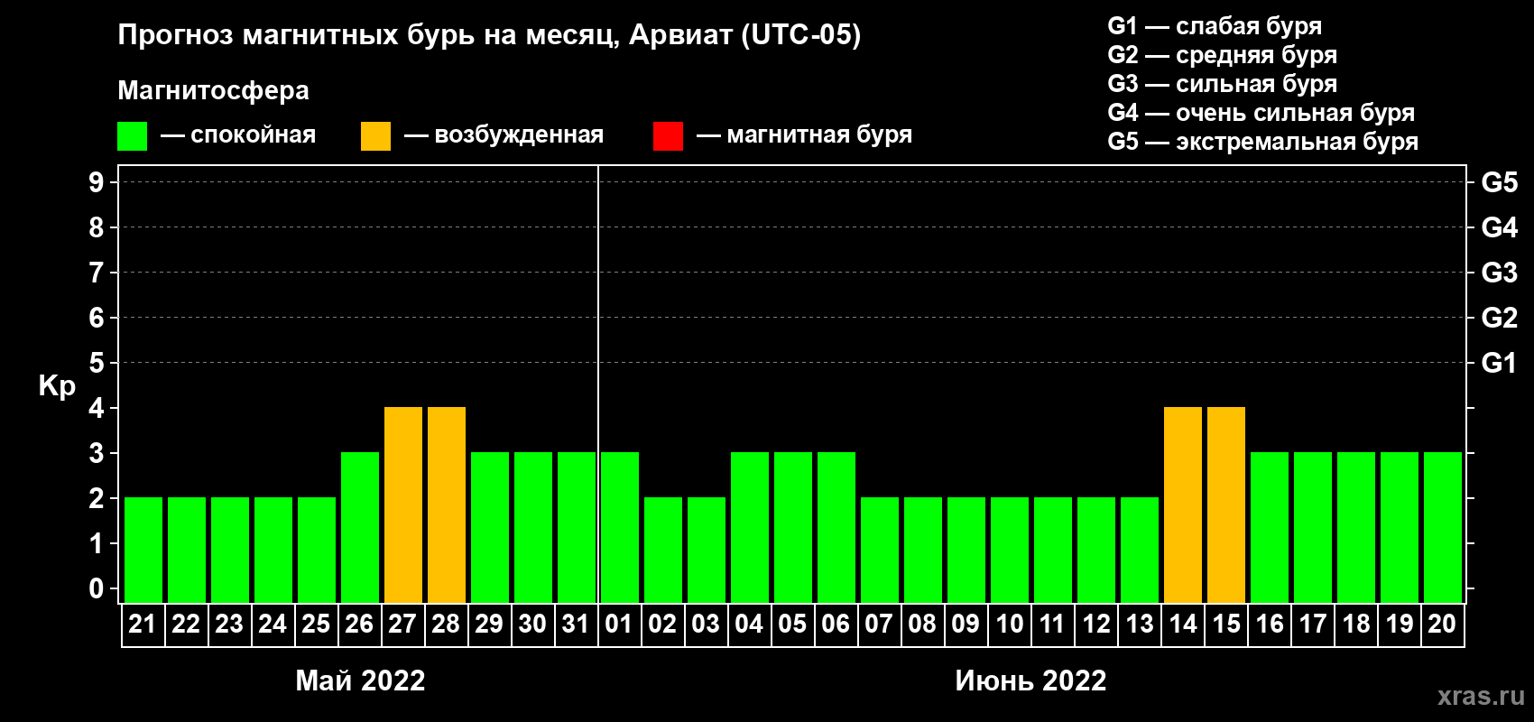 Прогноз магнитных бурь в Арвиате — 21 мая 2022 года