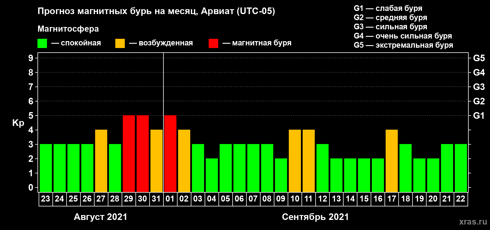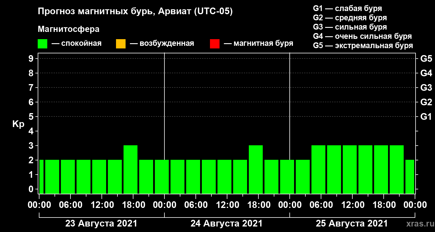 Прогноз магнитных бурь в Арвиате — 23 августа 2021 года