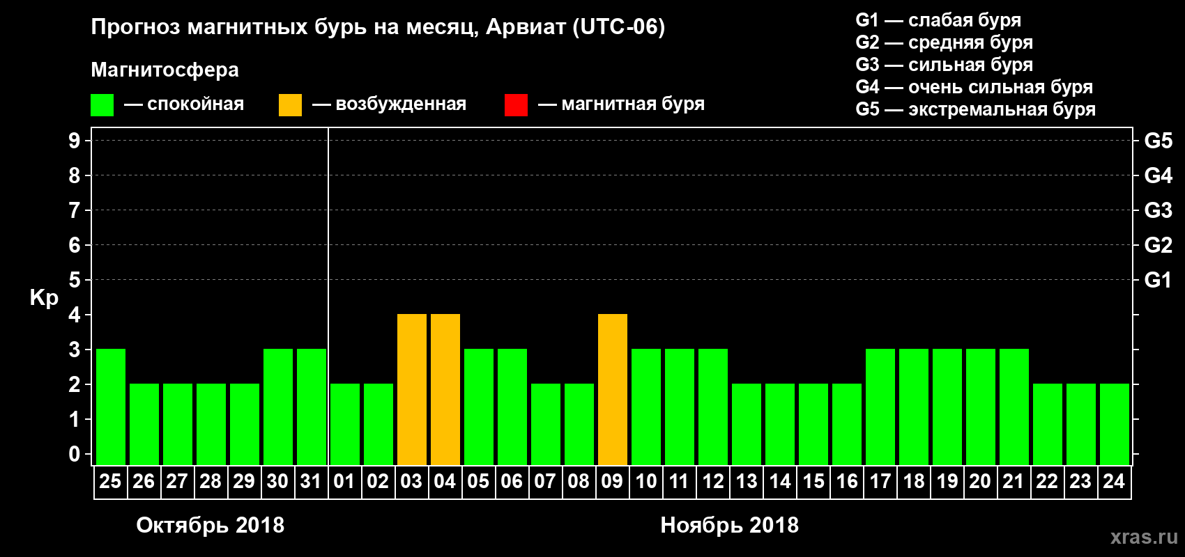 Прогноз магнитных бурь в Арвиате — 25 октября 2018 года