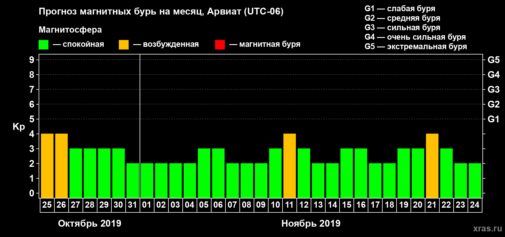 Прогноз магнитных бурь в Арвиате — 25 октября 2019 года