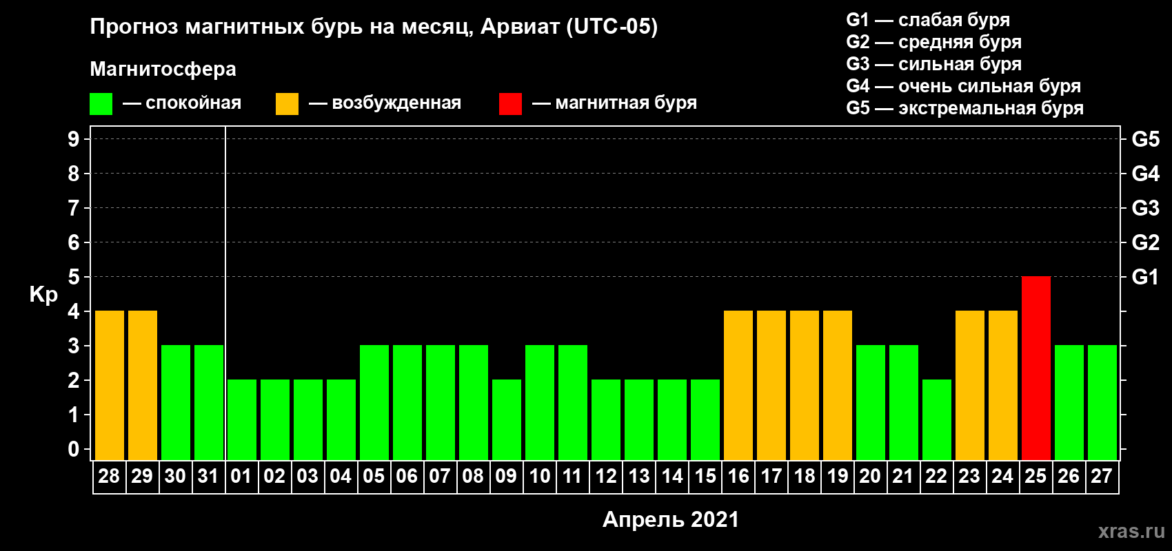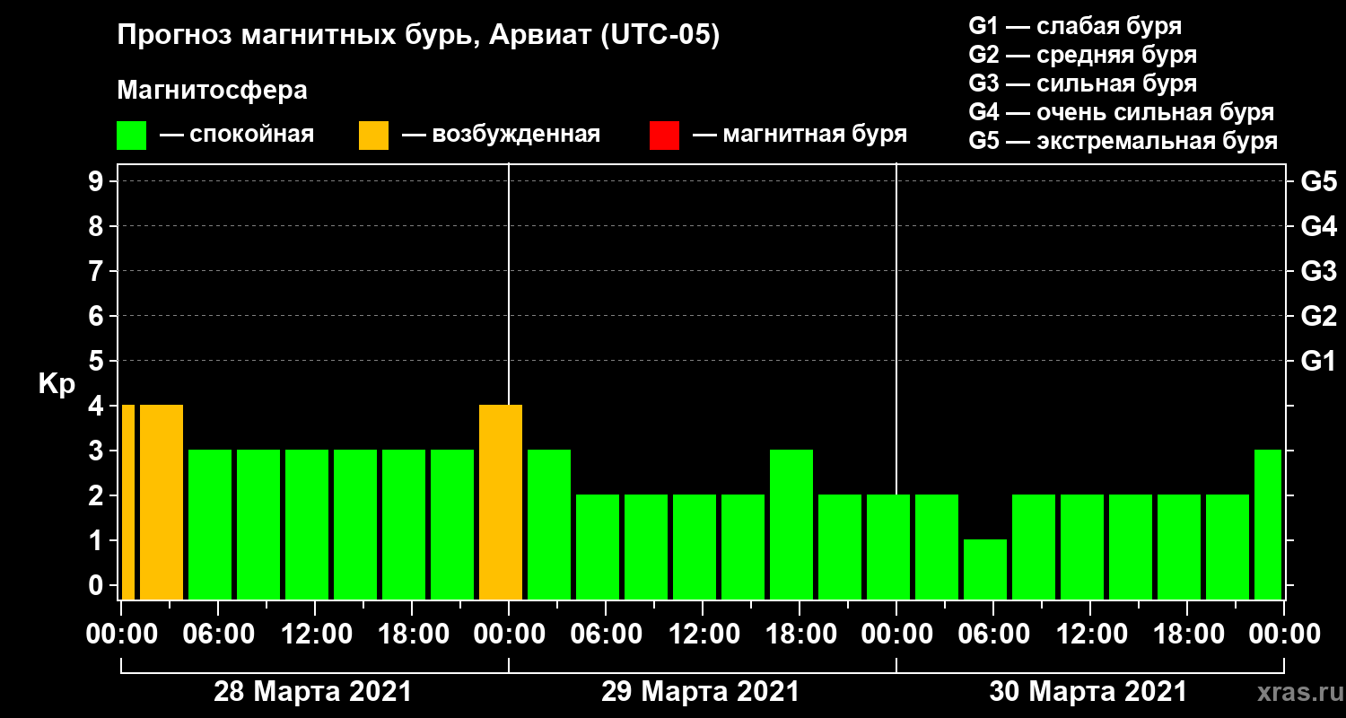 Прогноз магнитных бурь в Арвиате — 28 марта 2021 года