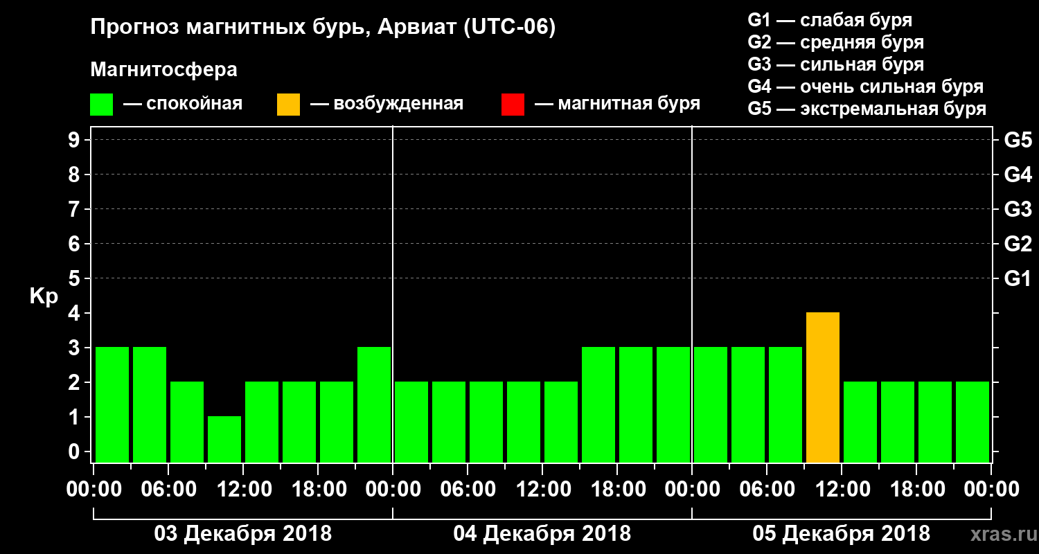 Прогноз магнитных бурь в Арвиате — 3 декабря 2018 года