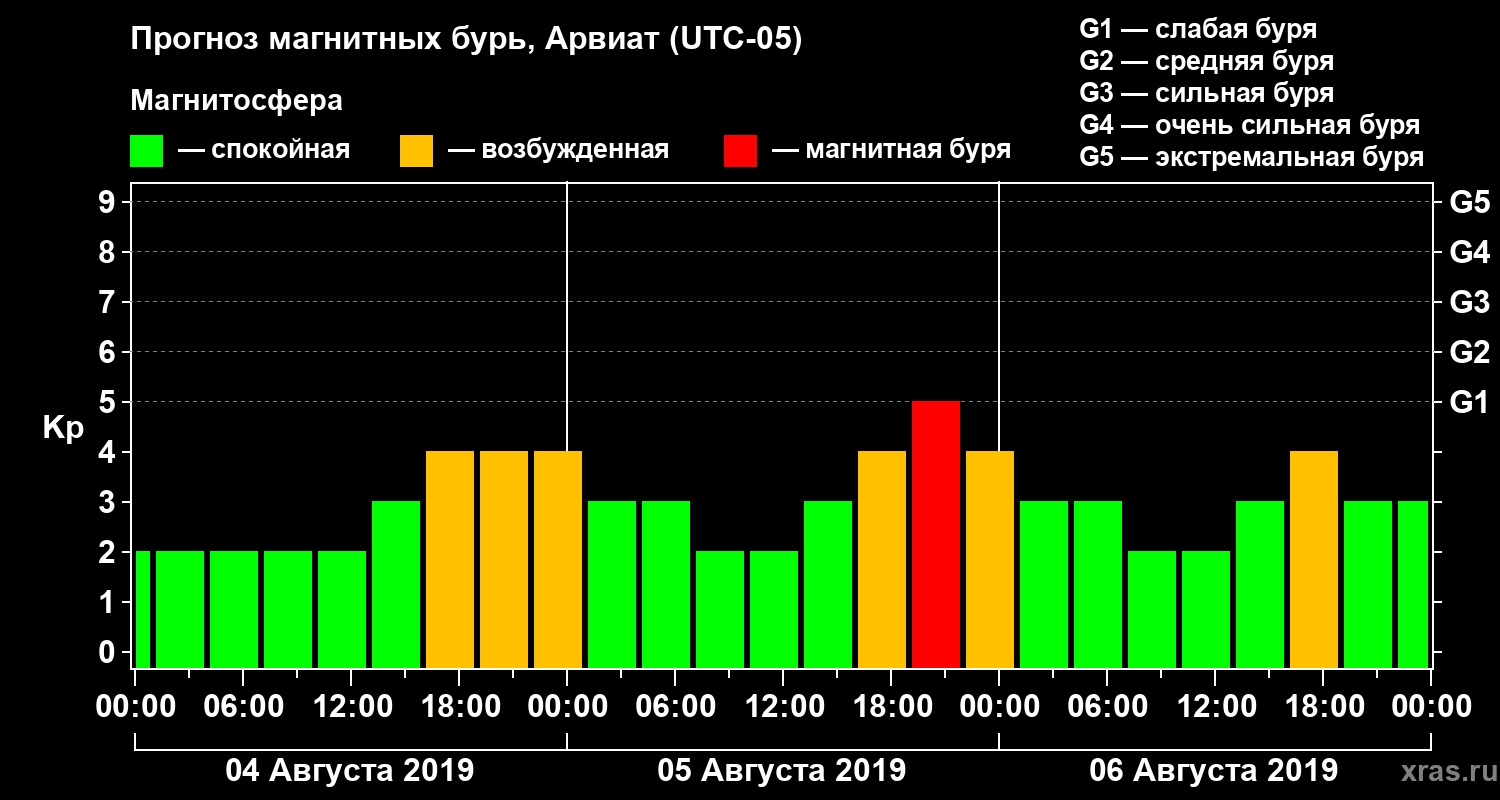 Прогноз магнитных бурь в Арвиате — 4 августа 2019 года