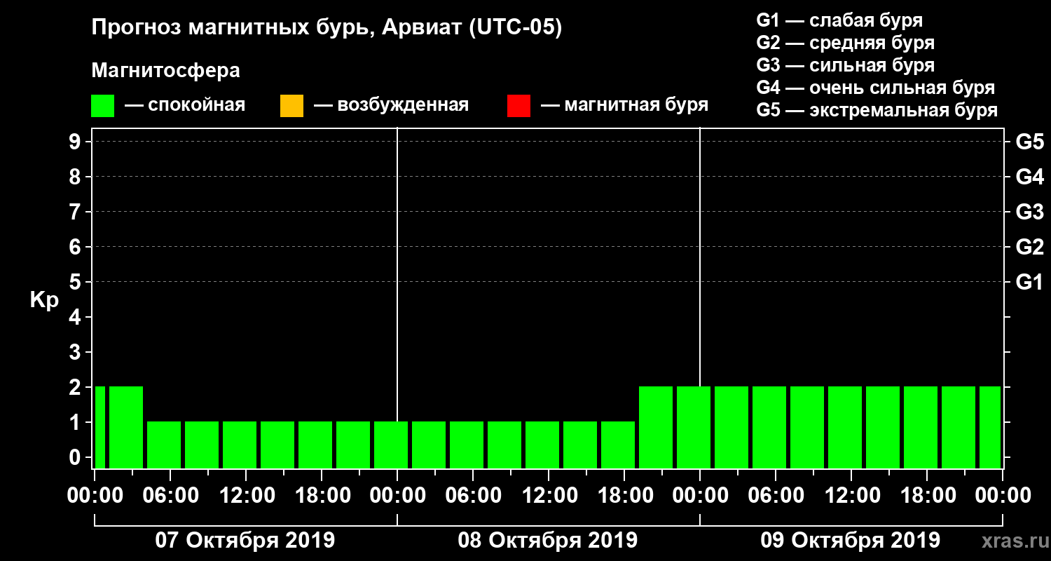 Прогноз магнитных бурь в Арвиате — 7 октября 2019 года