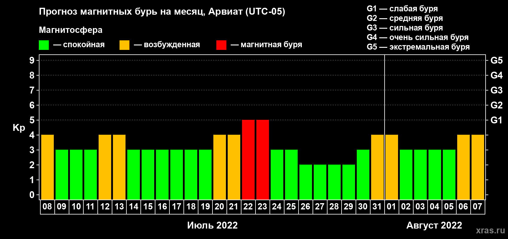 Прогноз магнитных бурь в Арвиате — 8 июля 2022 года