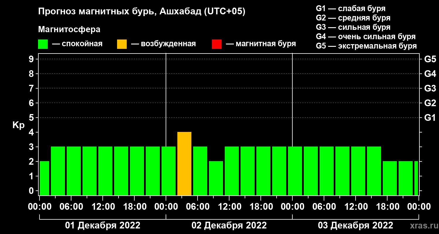 Прогноз магнитных бурь в Ашхабаде — 1 декабря 2022 года