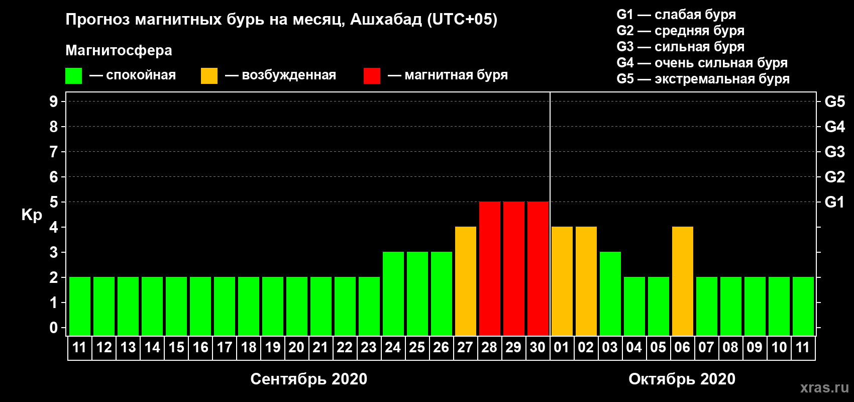 Прогноз магнитных бурь в Ашхабаде — 11 сентября 2020 года