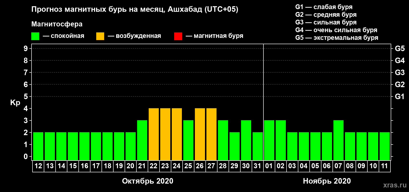 Прогноз магнитных бурь в Ашхабаде — 12 октября 2020 года