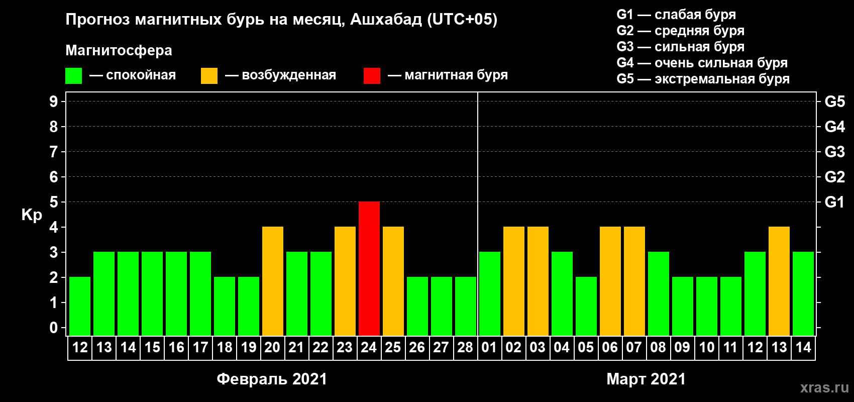 Прогноз магнитных бурь в Ашхабаде — 12 февраля 2021 года