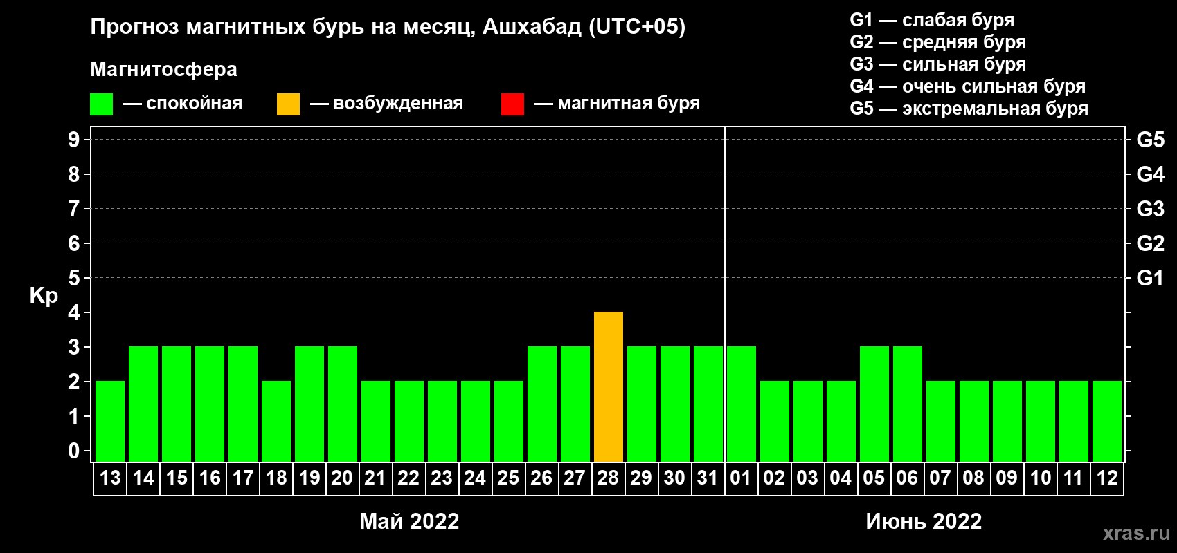 Прогноз магнитных бурь в Ашхабаде — 13 мая 2022 года