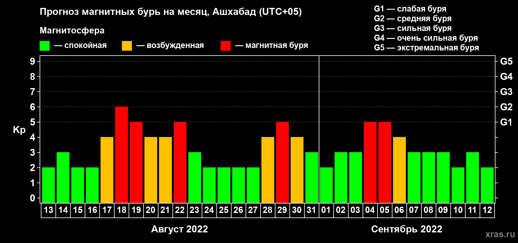 Прогноз магнитных бурь в Ашхабаде — 13 августа 2022 года