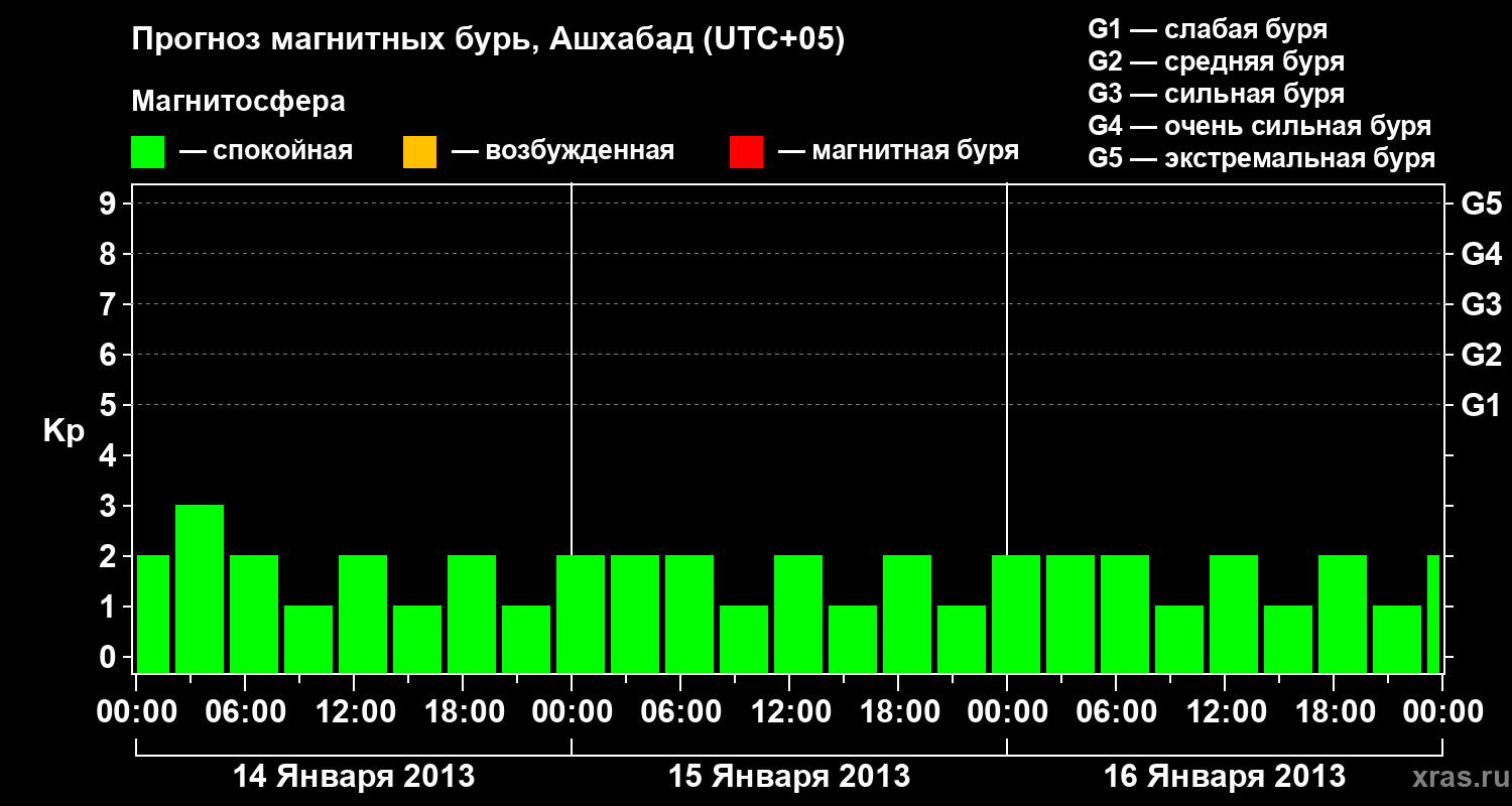 Прогноз магнитных бурь в Ашхабаде — 14 января 2013 года