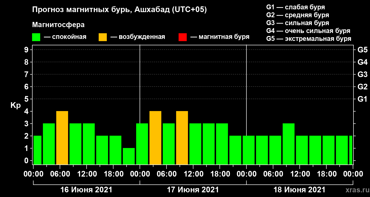 Прогноз магнитных бурь в Ашхабаде — 16 июня 2021 года