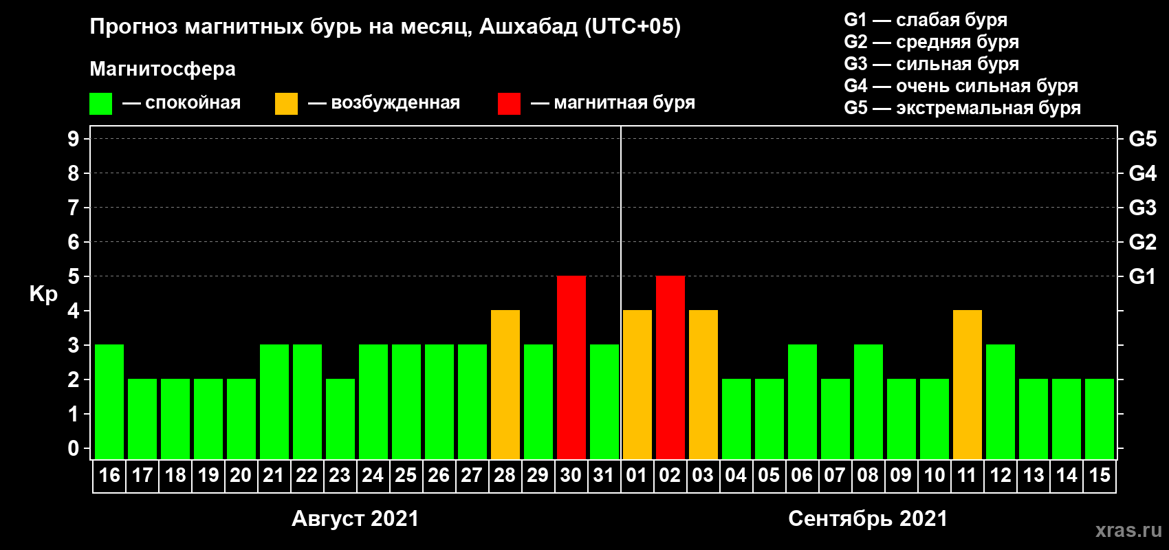Прогноз магнитных бурь в Ашхабаде — 16 августа 2021 года
