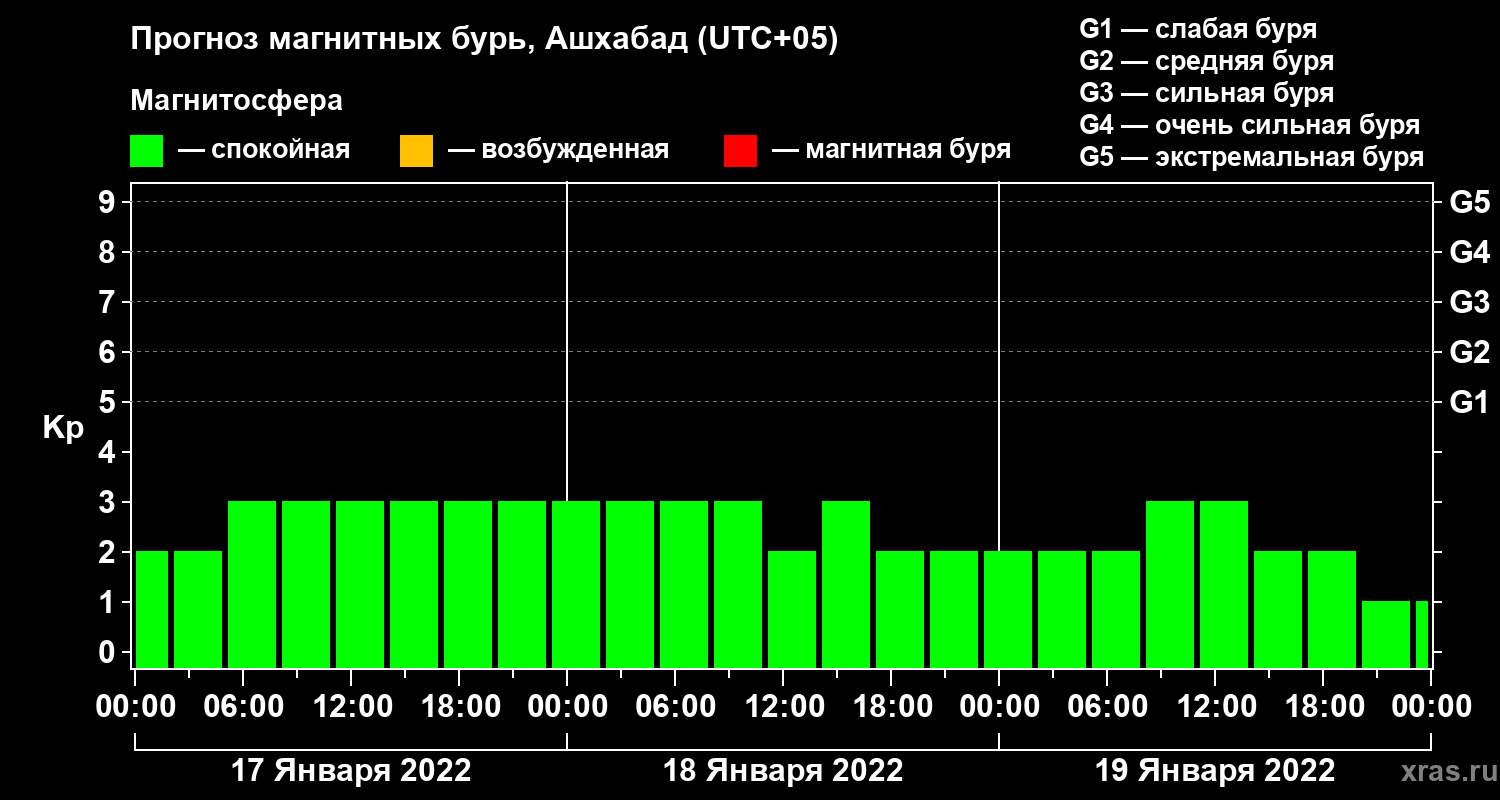 Прогноз магнитных бурь в Ашхабаде — 17 января 2022 года