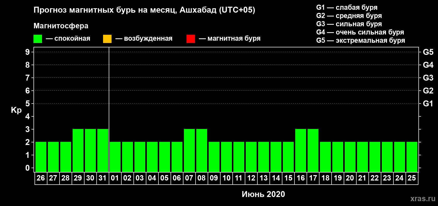 Прогноз магнитных бурь в Ашхабаде — 26 мая 2020 года