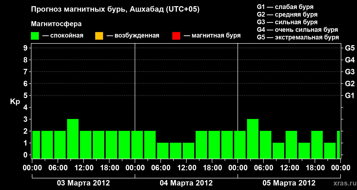 Прогноз магнитных бурь в Ашхабаде — 3 марта 2012 года