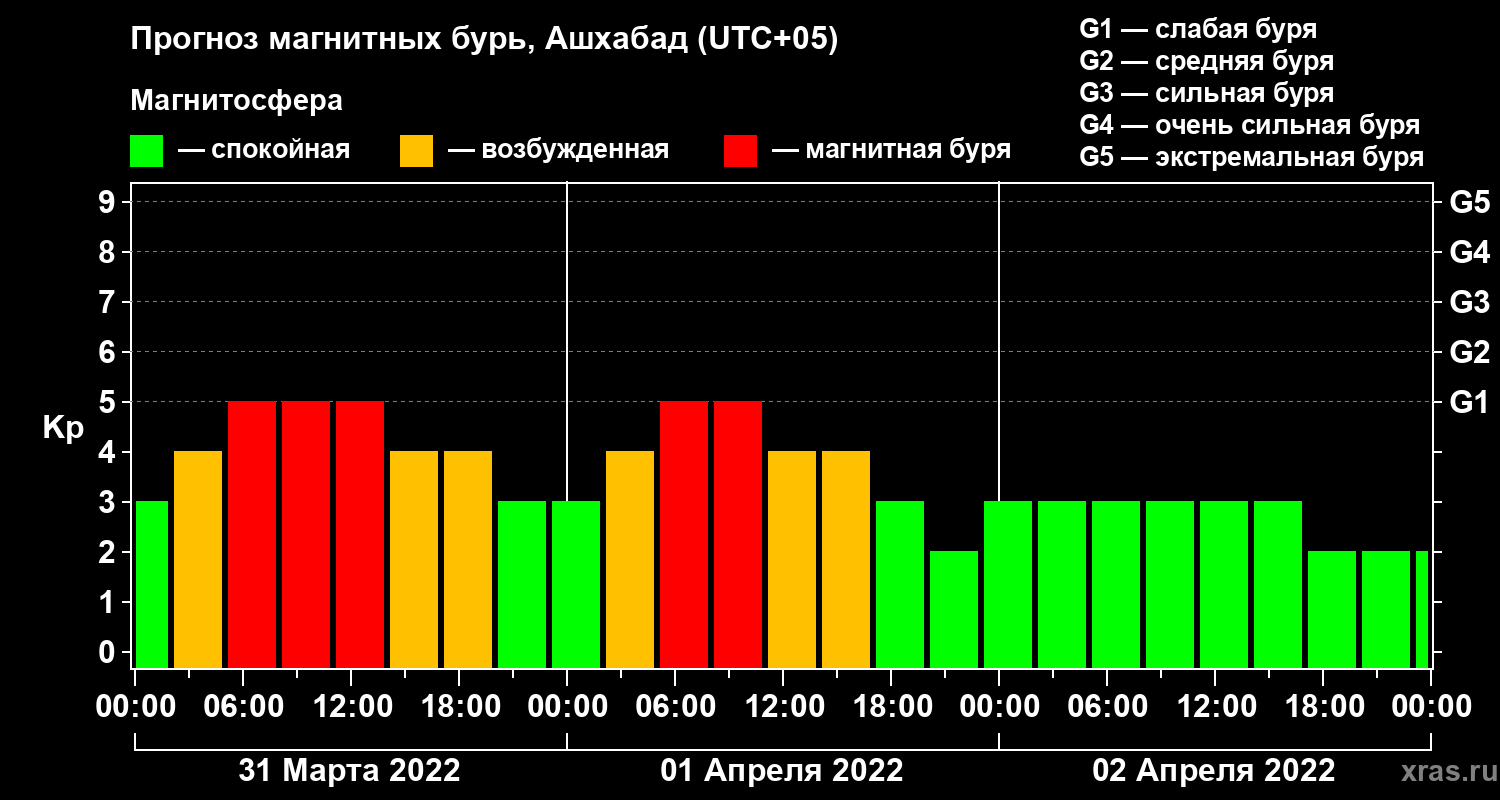 Прогноз магнитных бурь в Ашхабаде — 31 марта 2022 года