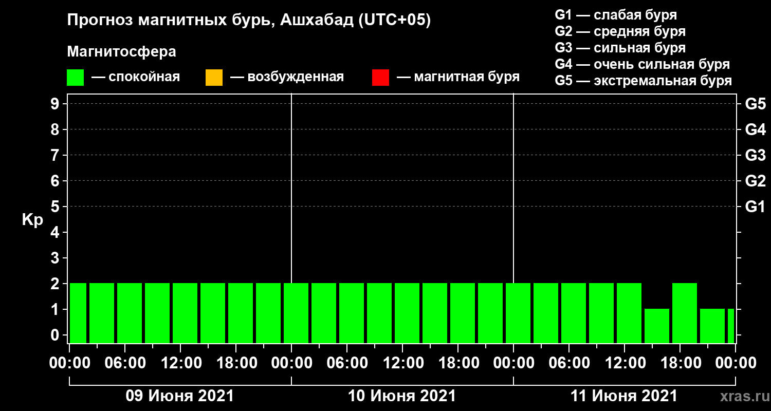 Прогноз магнитных бурь в Ашхабаде — 9 июня 2021 года