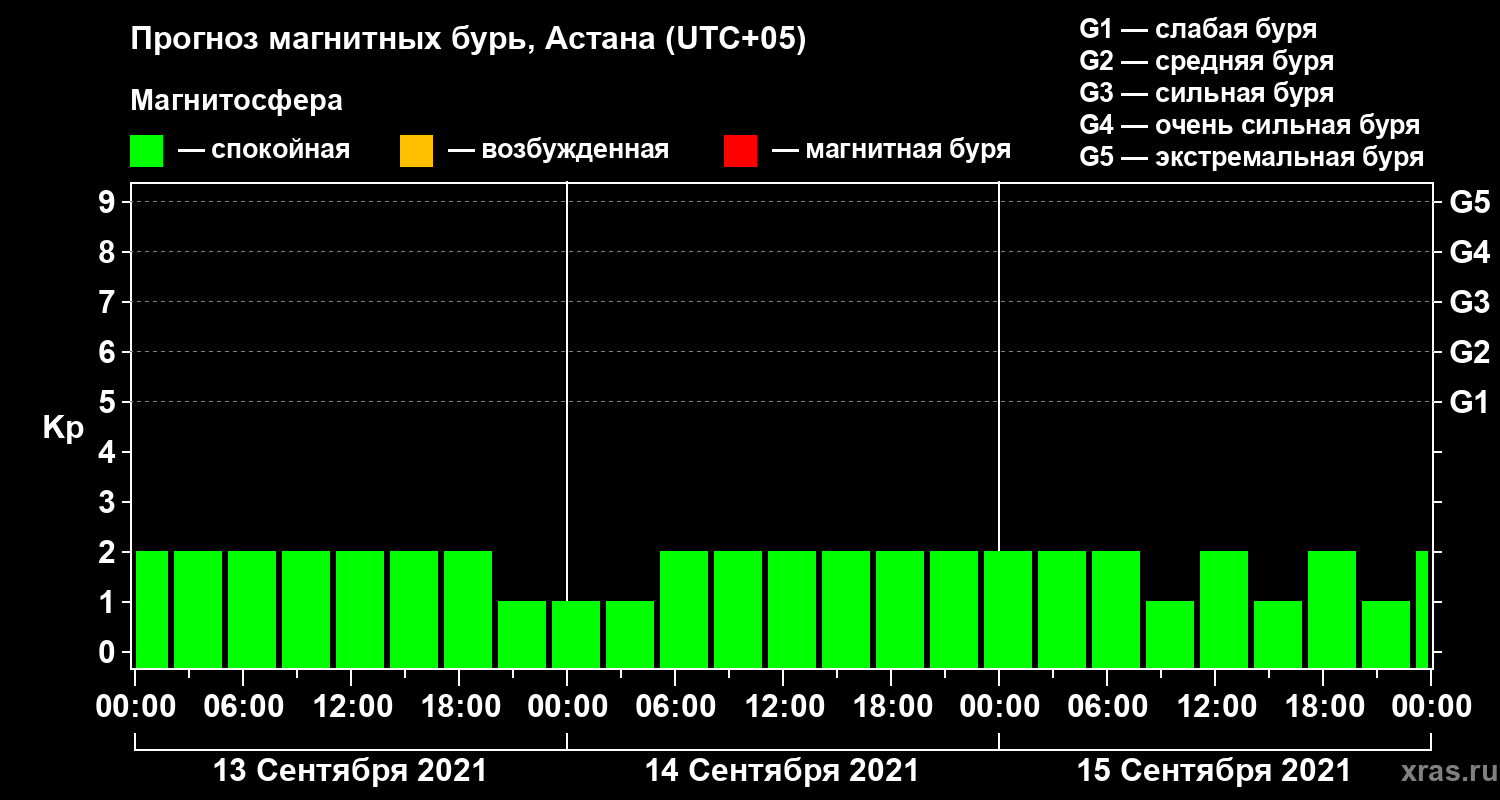 Прогноз магнитных бурь в Астане на 13 сентября 2021 года