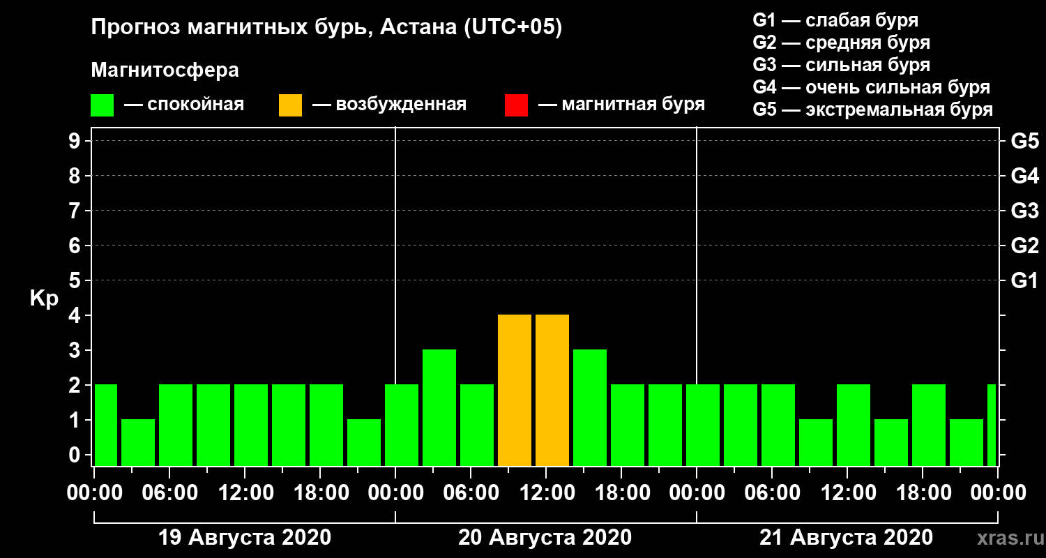 Прогноз магнитных бурь в Астане — 19 августа 2020 года