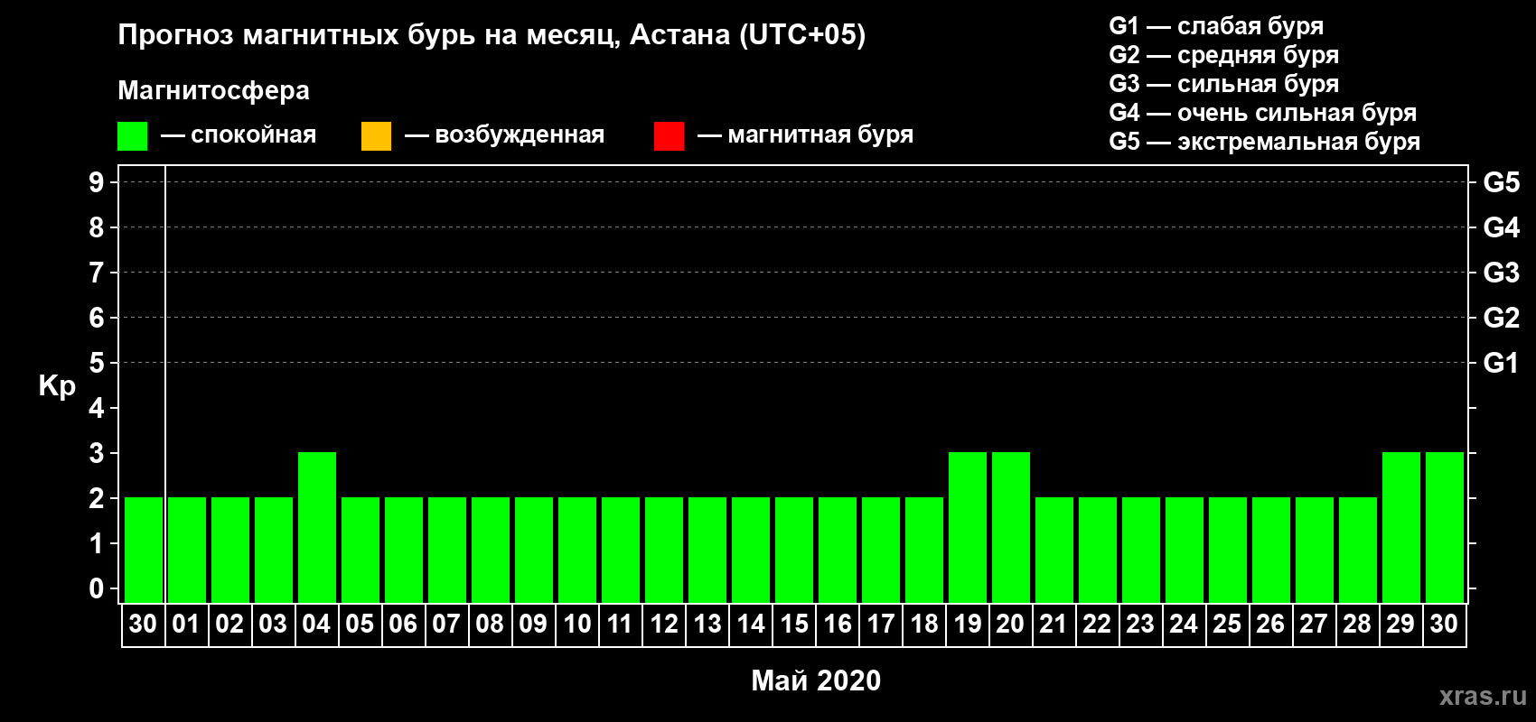 Прогноз магнитных бурь в Астане — 30 апреля 2020 года