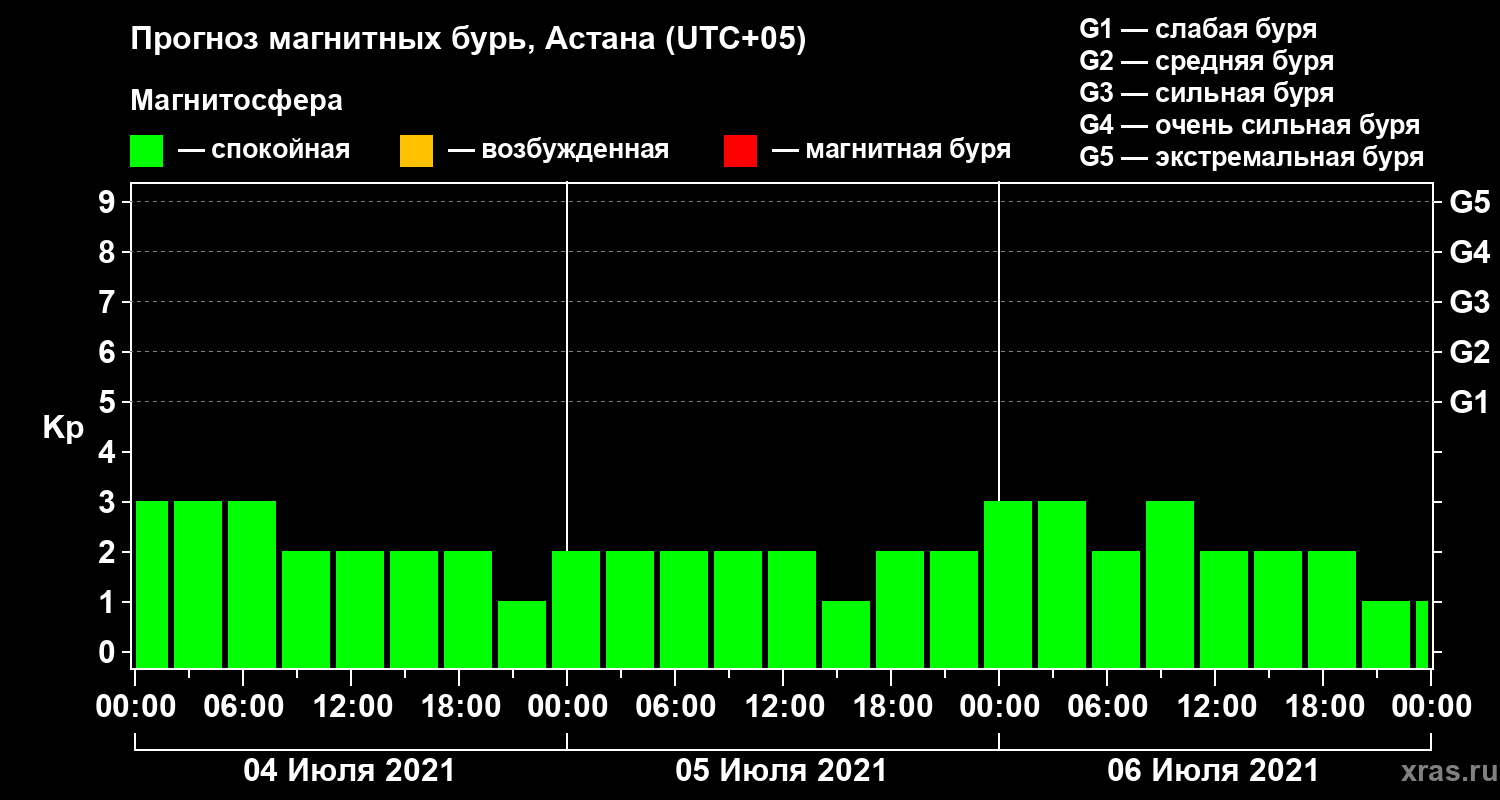 Прогноз магнитных бурь в Астане — 4 июля 2021 года