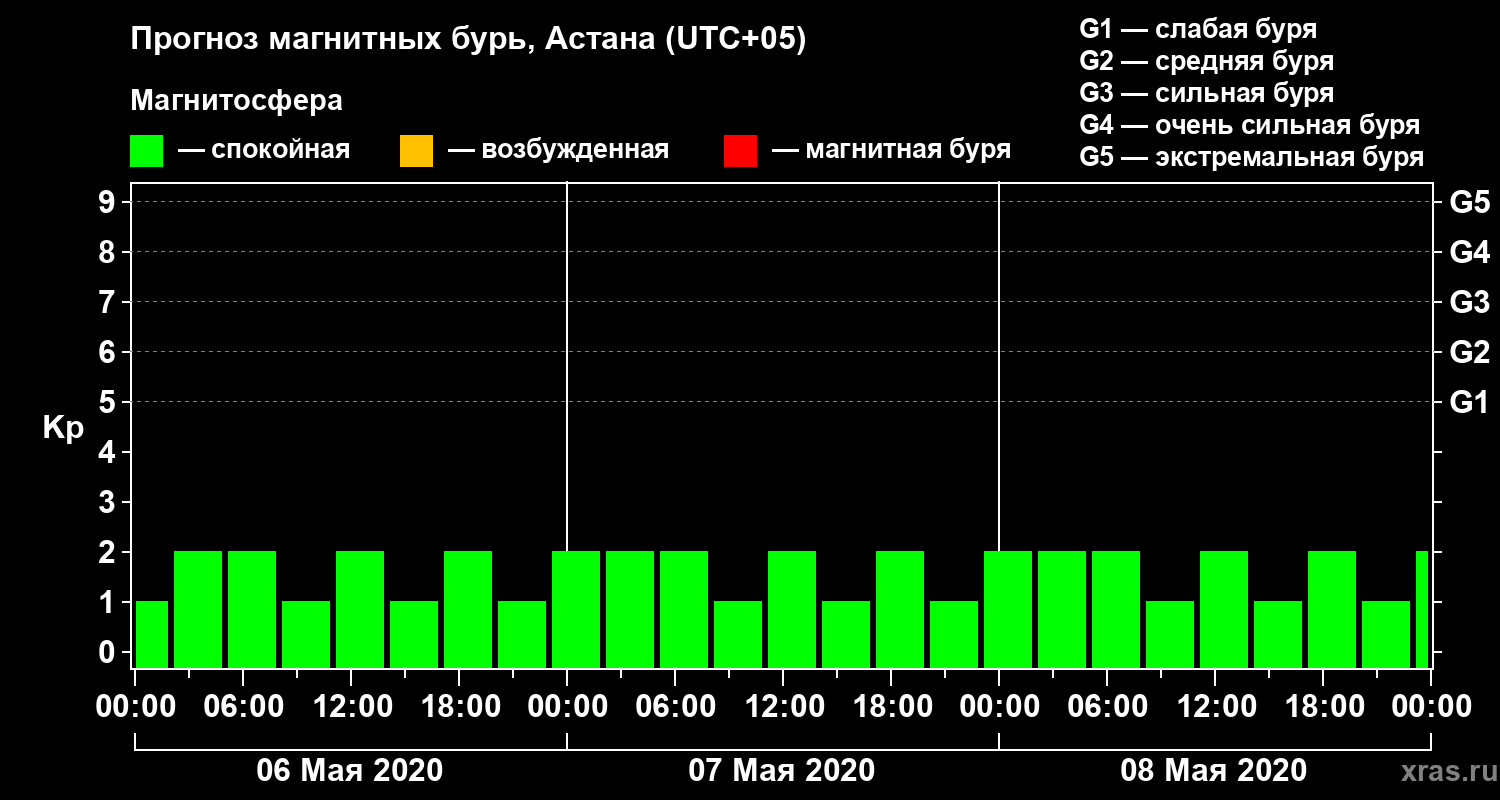 Прогноз магнитных бурь в Астане — 6 мая 2020 года
