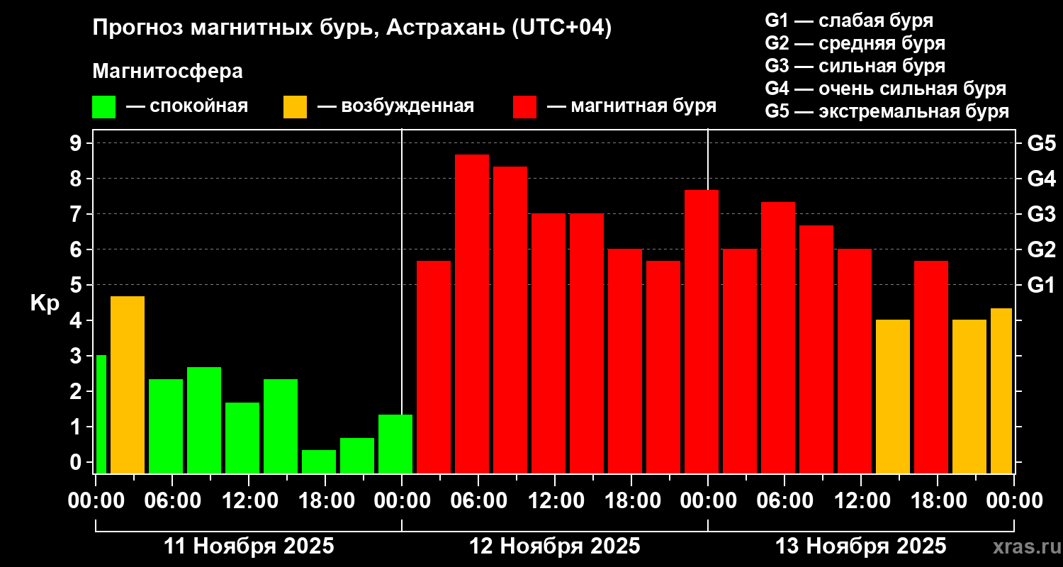 Прогноз магнитных бурь Астрахани — 11 ноября 2025 года