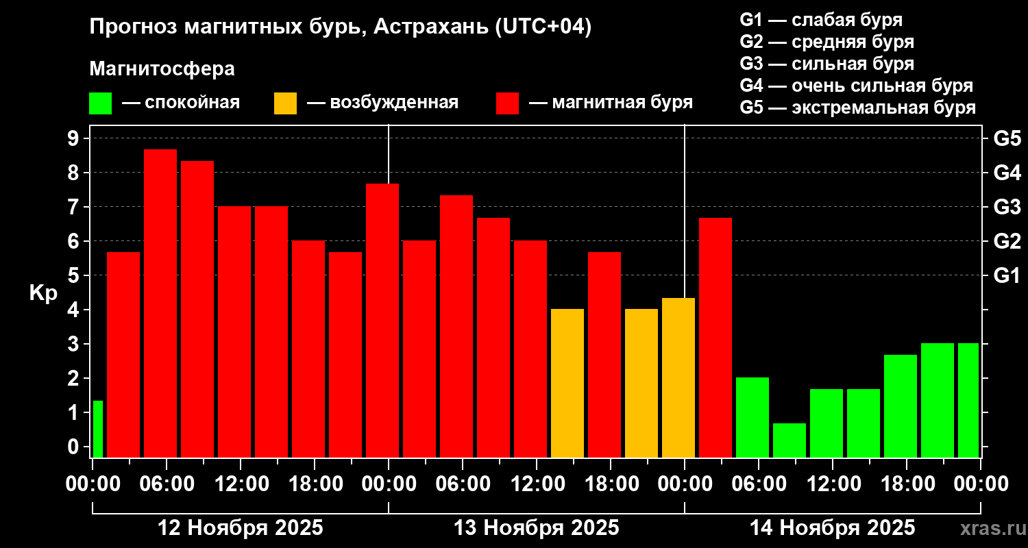 Прогноз магнитных бурь Астрахани на 12 ноября 2025 года